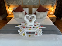 The happy hours was incredible and having refreshments on the lookout at sunset was incredible. The food was outstanding in taste quality and presentation. The staff was amazing- they went out of there way to help my wife and me celebrate our anniversary! They had incredible art etimología to detail and thoughtfulness down to every part!! The pools were great!!