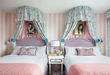 Hypo-allergenic bedding and pillowtop mattresses provide peaceful slumber in curated rooms. Blackout drapes ensure complete darkness for rest.
