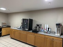 Light breakfast means just that. There was oatmeal packets, cold cereal and milk, a loaf of bread to make toast with butter and 4 types of jelly. Orange and apple juice. Coffee. There was 1 yogurt in the fridge.