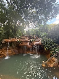 Nice warm pools, lots of variety. Good for couples or adult friends. Room was very beautiful, but hard beds, no individual reading light (except bright ones) and hair dryers didn't have power.