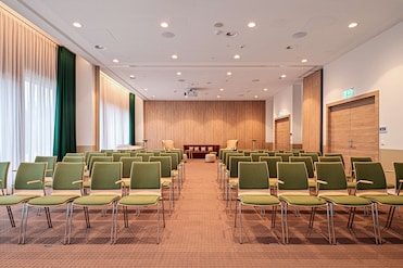 This hotel features six meeting rooms and a coworking space for productivity. After hours, guests can unwind at the spa, sauna, or lounge bar.