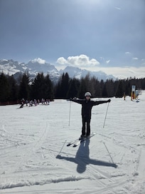 The position of the hotel couldnt be more perfect. Right opposite one of the main lifts - access to all levels of runs and easy link to the rest of the Madonna di Campiglio ski area. It is also right in the middle of town so resraurants and bars are right there on your doorstep. The breakfast was excellent and we had a couple of meals in the hotel too - staff were attentive and friendly and the dinner menu is on the higher end of culinary options for the town. A little more expensive but not crazily so. The bar adjacent is also a nice calm place to enjoy a drink. Another big plus for us was the spa which is a brilliant place to pamper and unwind after a day or skiing.