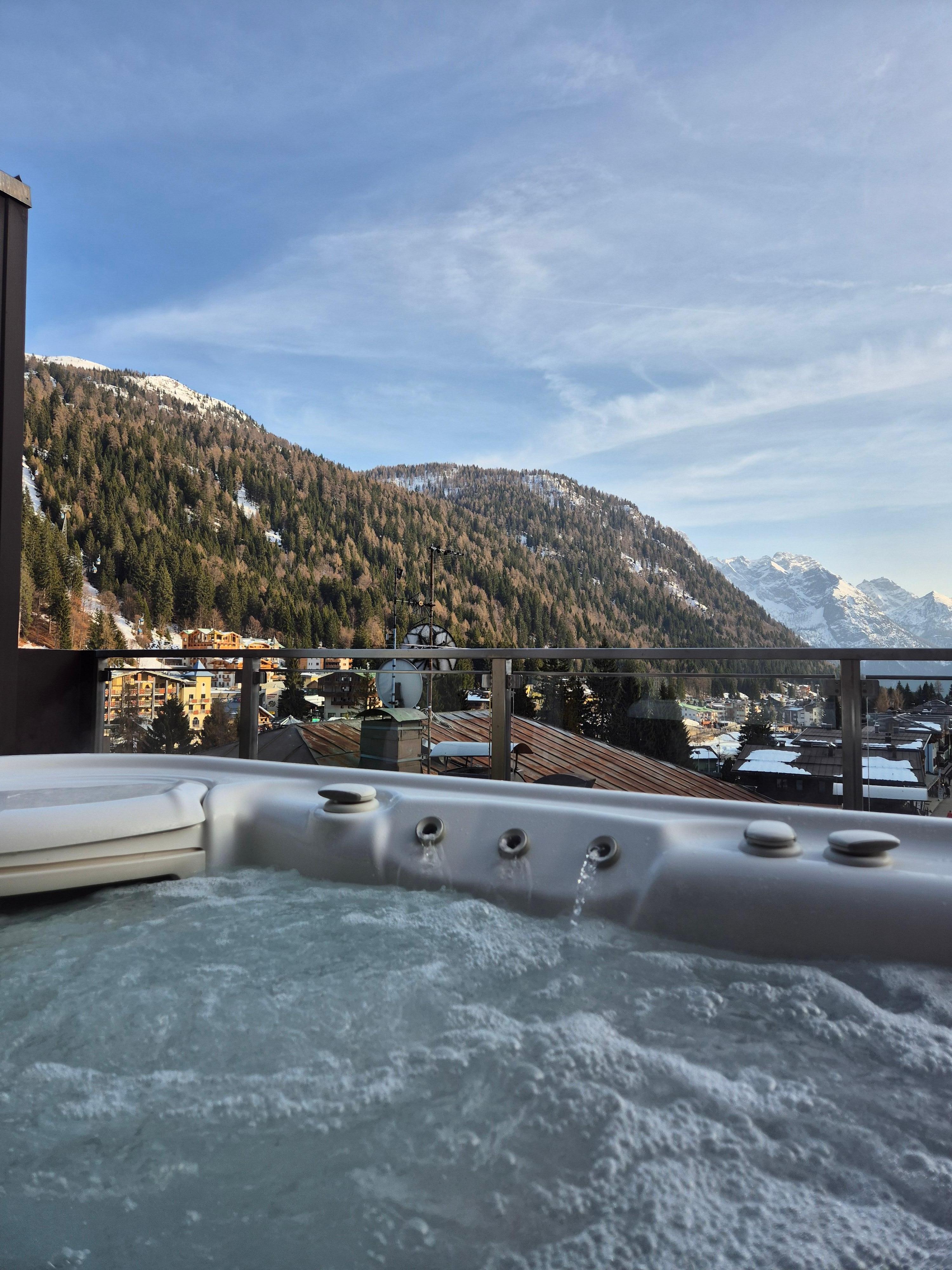 The position of the hotel couldnt be more perfect. Right opposite one of the main lifts - access to all levels of runs and easy link to the rest of the Madonna di Campiglio ski area. It is also right in the middle of town so resraurants and bars are right there on your doorstep. The breakfast was excellent and we had a couple of meals in the hotel too - staff were attentive and friendly and the dinner menu is on the higher end of culinary options for the town. A little more expensive but not crazily so. The bar adjacent is also a nice calm place to enjoy a drink. Another big plus for us was the spa which is a brilliant place to pamper and unwind after a day or skiing.