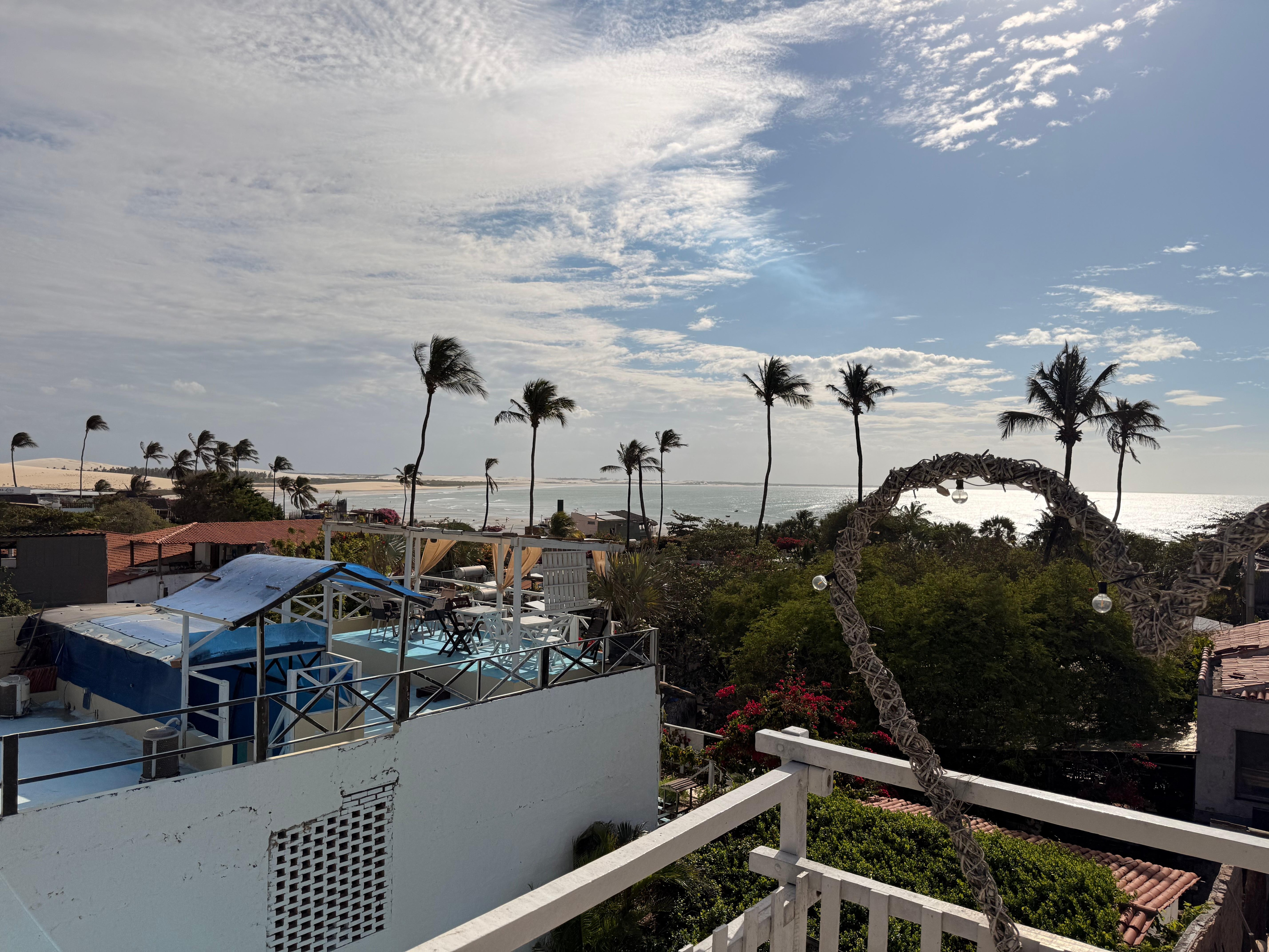 Serviço de excelente qualidade, fomos muito bem recepcionados pelo Léo com muitas dicas boas e muito bem atencioso. Pousada com ótima localização, perto de tudo. Tivemos a oportunidade também de conhecer o proprietário Alessadro, também foi muito atencioso e receptivo. Ambiente familiar, agradável e com uma vista linda para praia de Jeri, rooftop maravilhoso. pousada com uma vive europeia!
