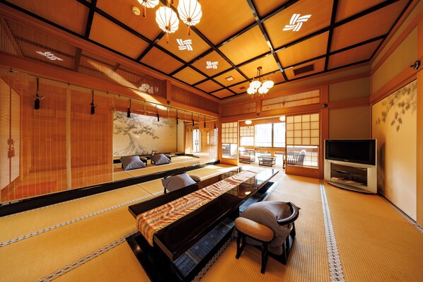 Our stay at this traditional ryokan was a highlight of our journey, offering an authentic immersion into Japanese hospitality. Upon arrival, we were welcomed at a picturesque, temple like entrance and promptly greeted by attentive staff. Following the custom, our shows were stored downstairs before we were guided into a tranquil tea room. There we were offered hot towels, matcha tea, and delightful snacks, while the staff efficiently transported our luggage to our room and prepared it for our comfort.