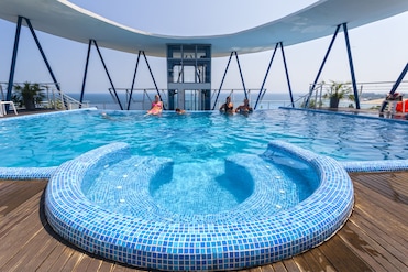 We were on the 4th floor, on the front, looking out to sea and it was great, we saw Dolphins feeding right in front of the hotel on one afternoon. Another side of the hotel looks out over Nessebar old town, which would be equally good. However, rooms to the other side would look out on apartments.