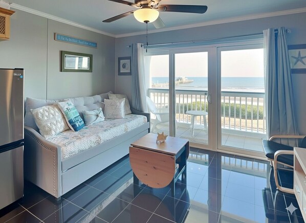 Beachfront condo with kitchenette, near Galveston Seawall