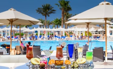 这个度假村拥有 3 个室外游泳池、一个免费水上乐园和一个儿童游泳池。客人可以在遮阳伞下休息、从水滑梯上滑下以及在池畔用餐。