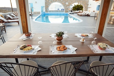 Breakfast, lunch, dinner served; Mediterranean cuisine, pool views  - Vigla Hotel (Amorgos)
