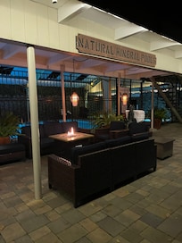 There are indoor/outdoor hot springs open between 8:00 AM and 10:00 PM. The temperature in the hot springs is set to 102°F.