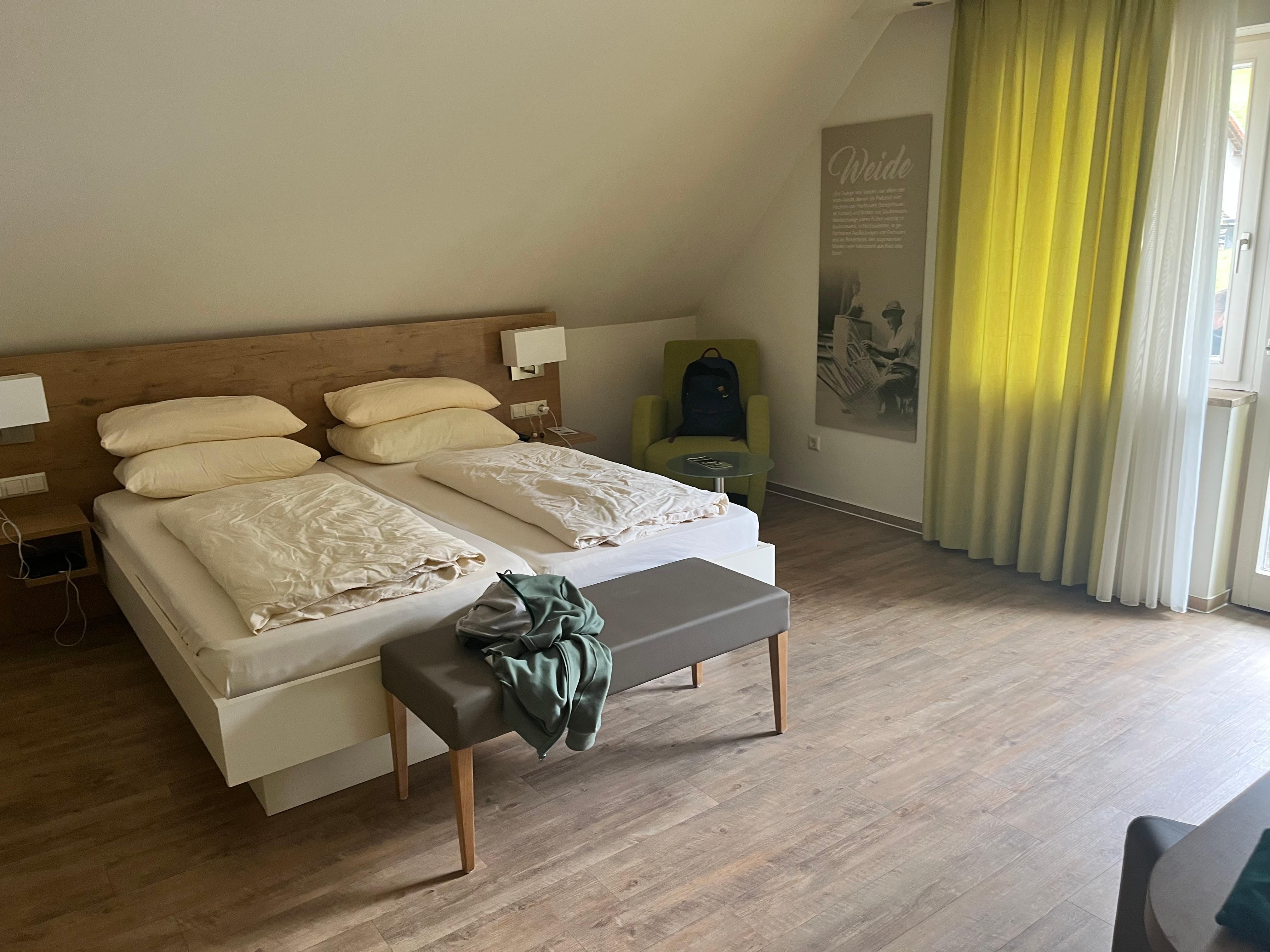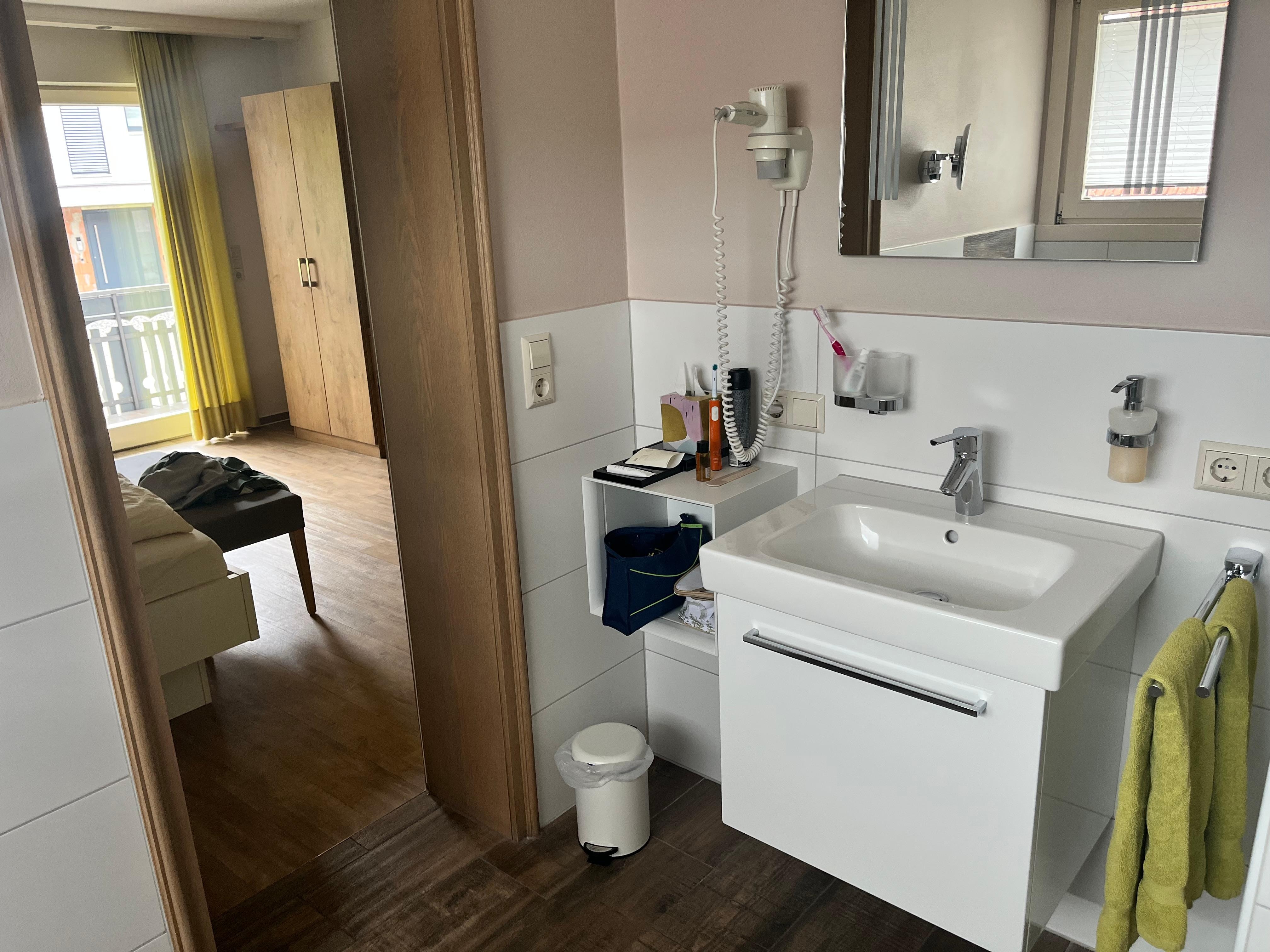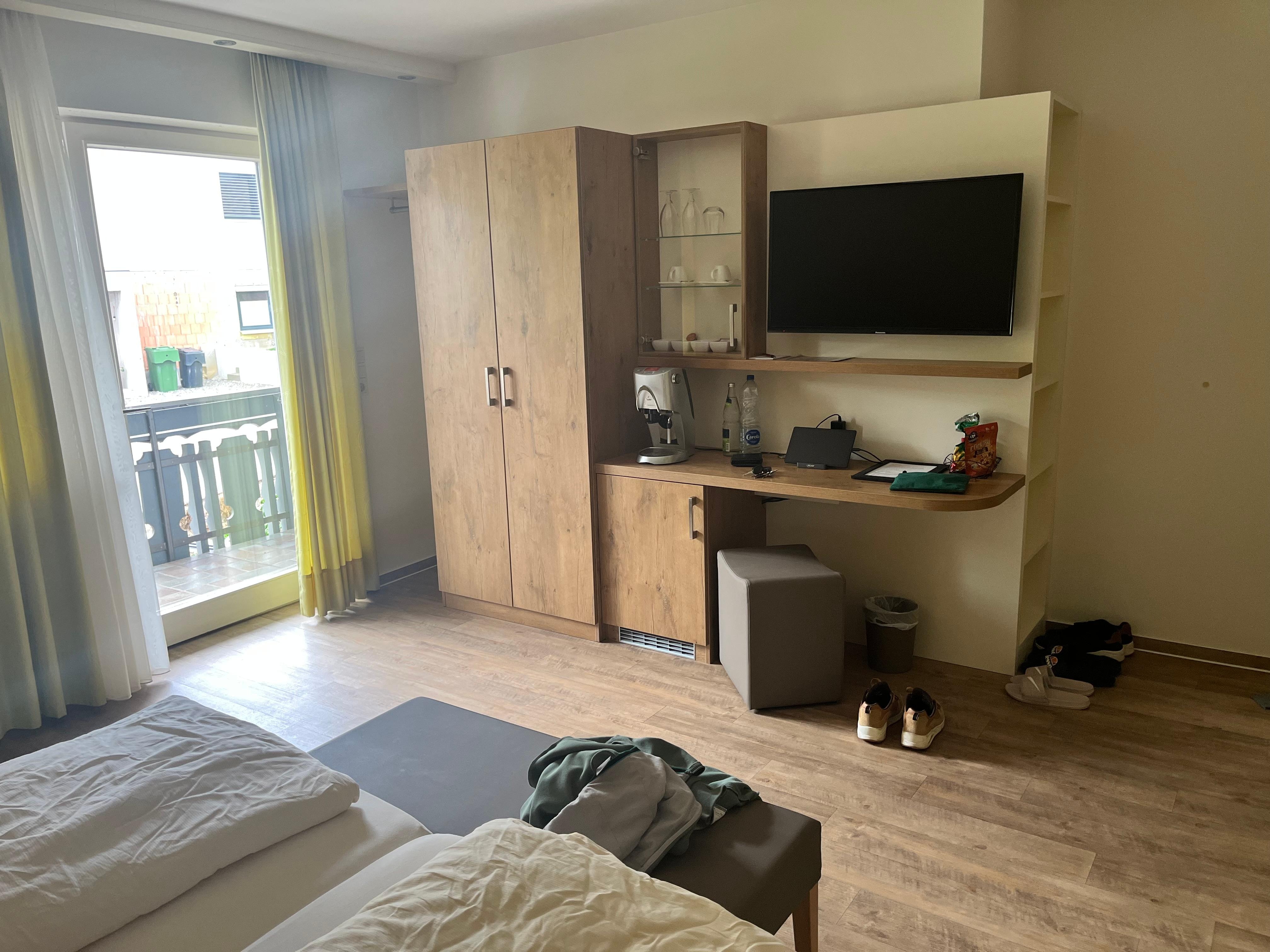 Het hotel is zeer rustig en goed gelegen. Op nog geen 10' ben je met de wagen in het centrum van Biberach waar er verschillende supermarkten zijn. Wij hadden een familiesuite met 3 kamers en 2 badkamers met een zeer mooi uitzicht vanaf ons balkon op de omringende bergen. Het ontbijtbuffet was zeer uitgebreid en smaakte voortreffelijk. De gastvrouw was zeer vriendelijk en behulpzaam, ze maakte 's morgens verse smoothies en eitjes. Het was ook zeer rustig in het hotel. Het zwembad en de sauna zijn wel niet in het hotel zelf, maar schuin aan de overkant van de straat, dit vonden we eigenlijk het enige minpuntje, maar voor de rest enkel pluspunten! Spijtig dat we hier maar 2 nachten hebben doorgebracht, hier hadden we zeker een hele week of langer willen verblijven...