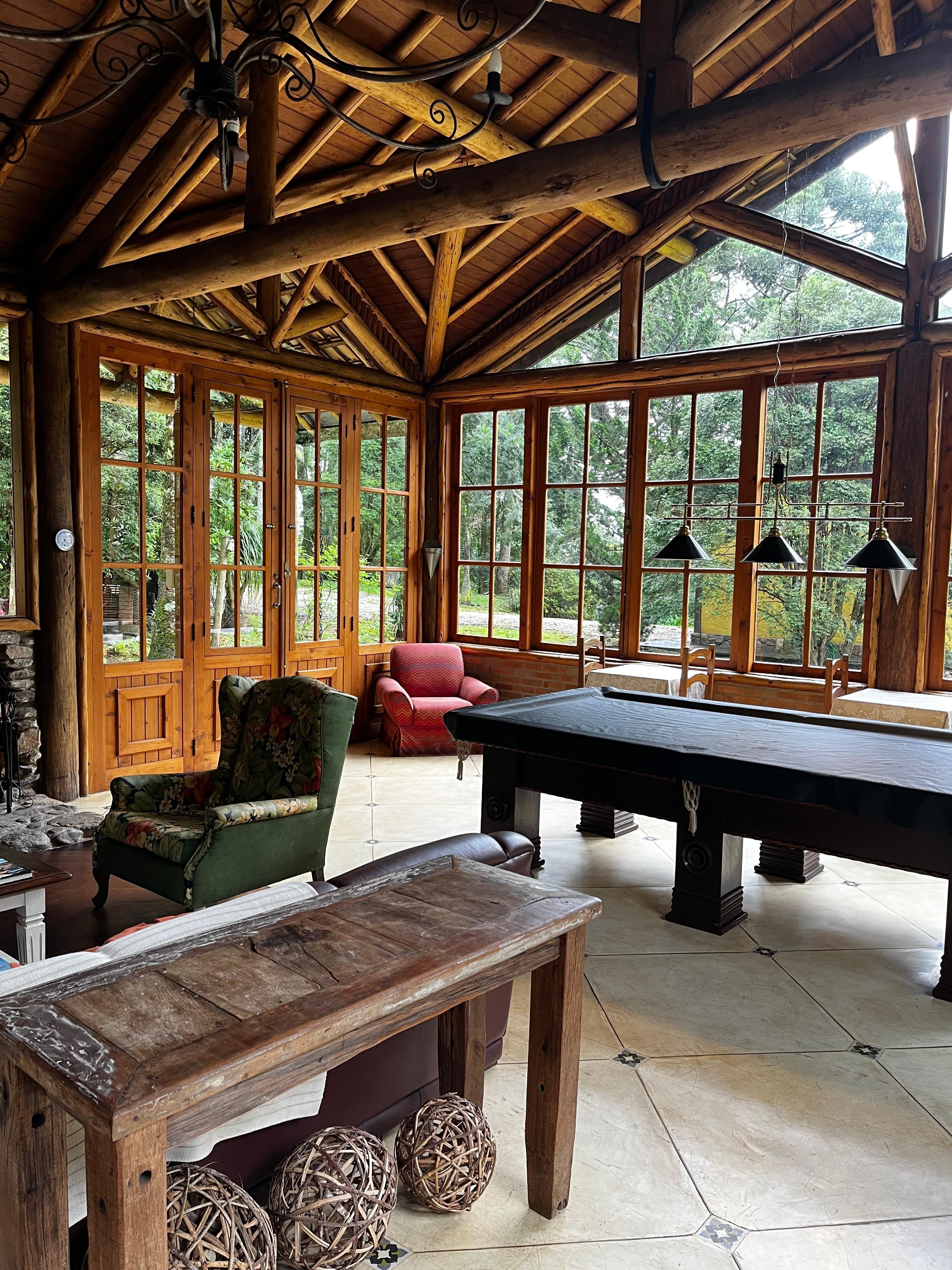 O espaço comum é o coração da pousada: uma lareira linda, sofás aconchegantes, mesa de bilhar, jogos e um café da tarde delicioso com bolos, biscoitos, chá e café a vontade. Não dá vontade de ir embora!