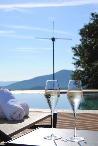 The seasonal outdoor pool offers 24-hour access for spontaneous swims. Pool loungers and umbrellas create the perfect spot to unwind poolside.