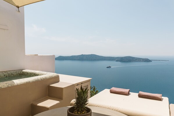 Beautiful view and great location! Quieter than Fira and very close to Skaros Rock and other spots for a bit of walking. Right on the Fira-Oia path.