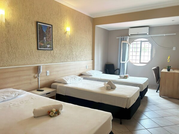 Considerando a localização, a gentileza dos recepcionistas e o quarto amplo, comecei com nota 8. Ao entrar no banheiro, me deparei com torneira vazando, chuveiro fraco, piso e azulejos velhos e encardidos, ausência de ganchos para pendurar, cheiro de esgoto no ralo . Baixei pra nota 7. Quarto com armário e bancadas funcionais, ar condicionado silencioso e eficiente. TV, frigobar e Wi-Fi ok. Café da manhã num espaço pequeno, 20 cadeiras e 12 mesas. Alimentos mal dimensionados, acabou ovo mexido, frutas, sucos, pão de queijo, pratos, xícaras e talheres. Uma só pessoa pra lavar, secar, preparar e repor. Alimentos sem reposição, só os utensílios. Aliás, tem que mexer os líquidos com colher de sopa. Não tem nem mexedor descartável. Baixei pra nota 6. A arrumadeira só entra se for pedida a limpeza. Até lixo não é retirado se não pedir. Enxoval de roupa de cama e banho bem desgastados. Iluminação fraca. Durante o dia a luz solar ajuda mas a janela no andar térreo deixa o ambiente muito exposto. E por fim, perderam a minha chave no último dia. Precisei esperar tirar uma cópia da reserva da arrumadeira.