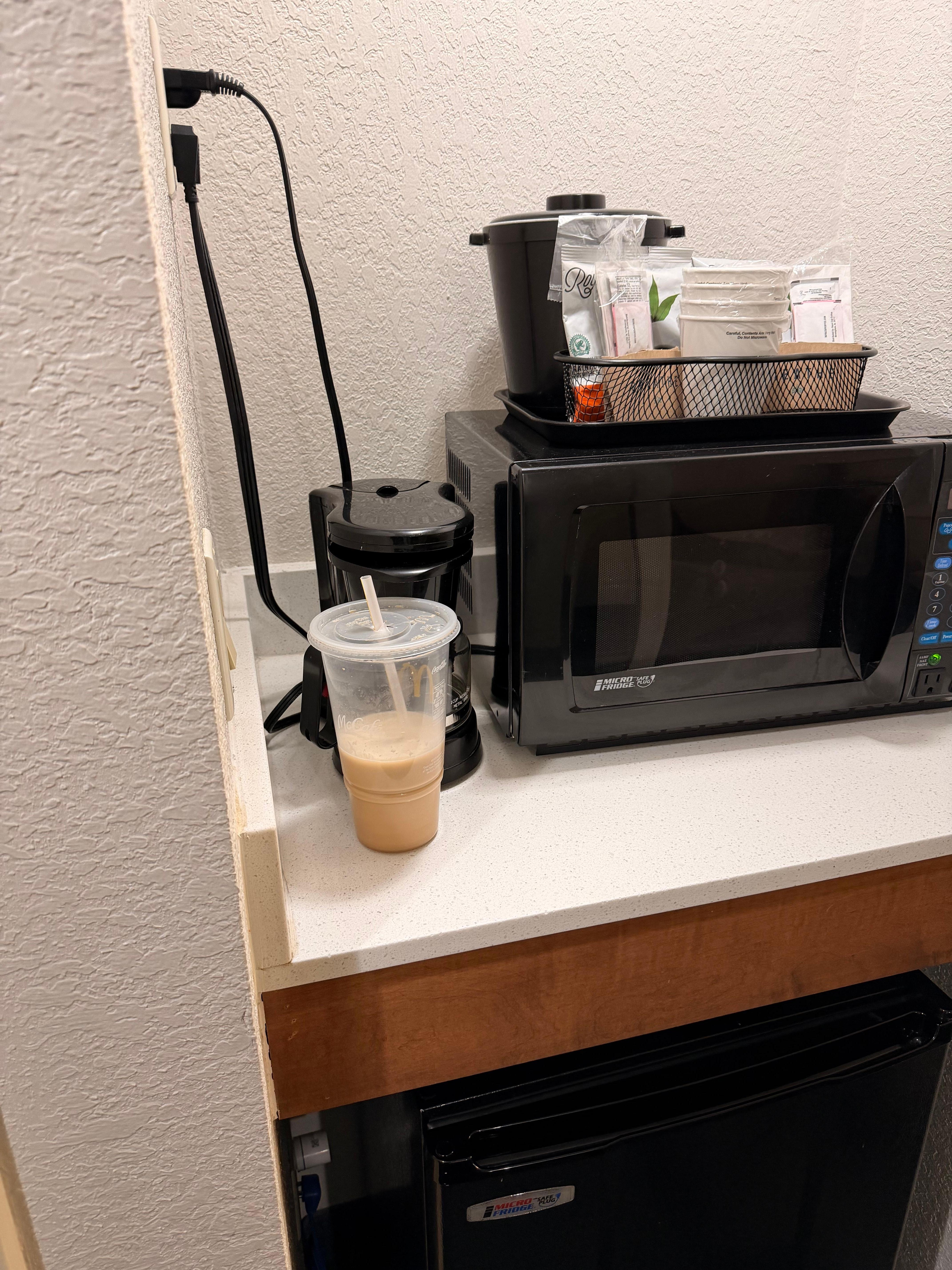 We found an old McDonald’s iced coffee cup left in the room. That made us question the cleanliness of the room. The juice dispenser was out of order and waffle maker were out of order for breakfast. The overnight employee at the front desk was very accommodating to our needs and brought us extra pillows and an extra comforter quickly. The intake for our air conditioner was right where people were smoking so you could smell smoke in the room. Our kids liked the pool and hot tub.