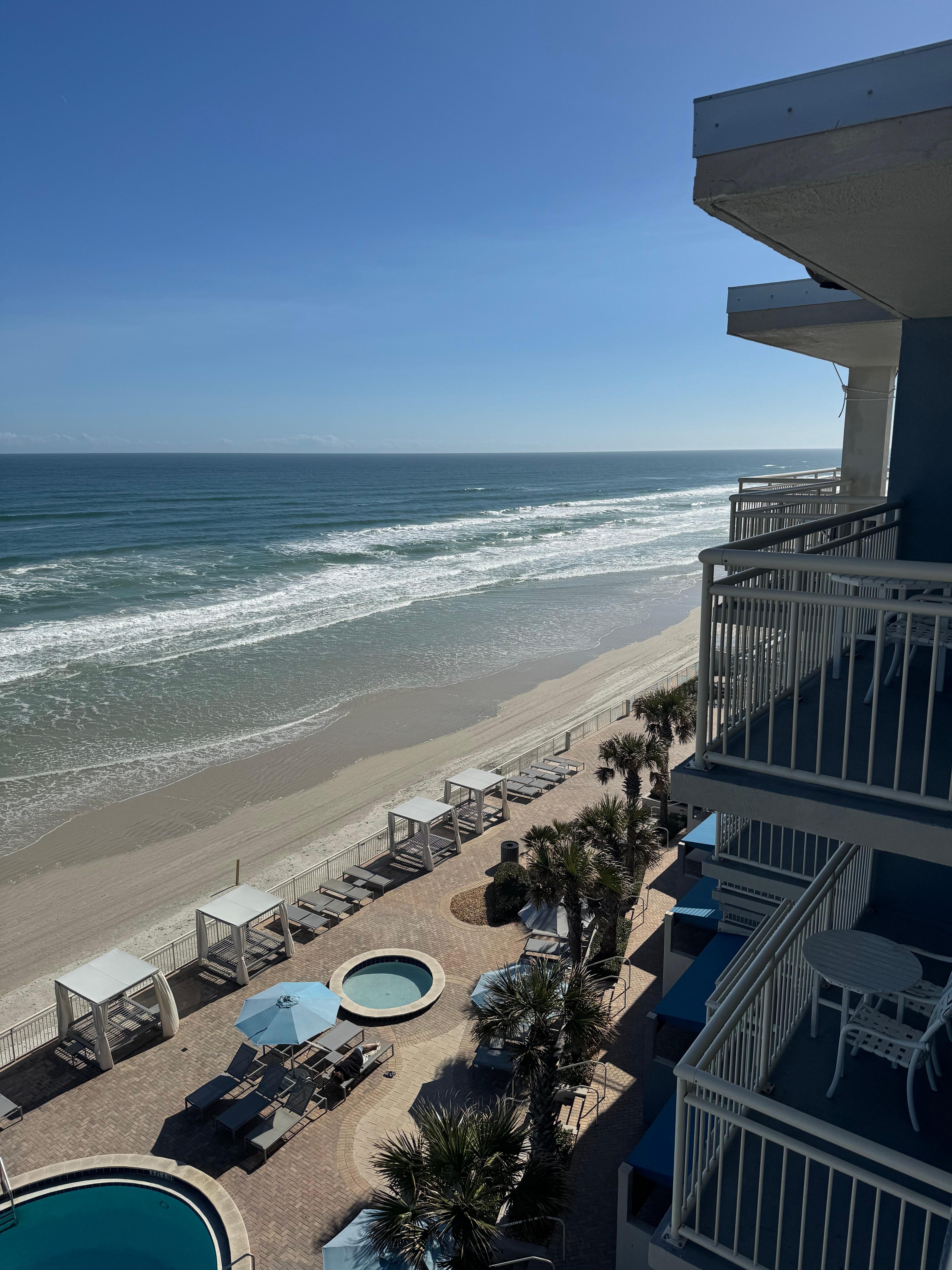 Great service and rooms. We had an ocean front room with balcony. Easy quick check in - self parking across the road with a bridge back to the hotel. Good tiki bar with a good range of punchy cocktails….. Nice spacious room with the usual American perks. A great hotel with lots of good service close to the racetrack (15 mins) Recommended.