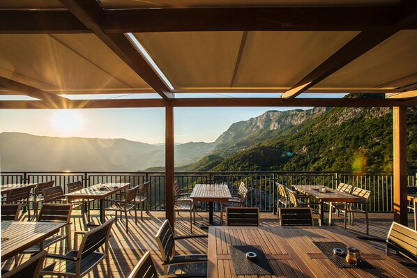 靠近下奥斯特罗格修道院的山区酒店,设有餐厅
