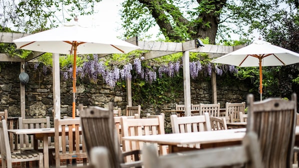 Quaint, old inn and rooms. Modern features like rain shower head, lighted mirror, electric teakettle. Comfortable beds. Very convenient to town center and shops. Wonderful food. Friendly staff.