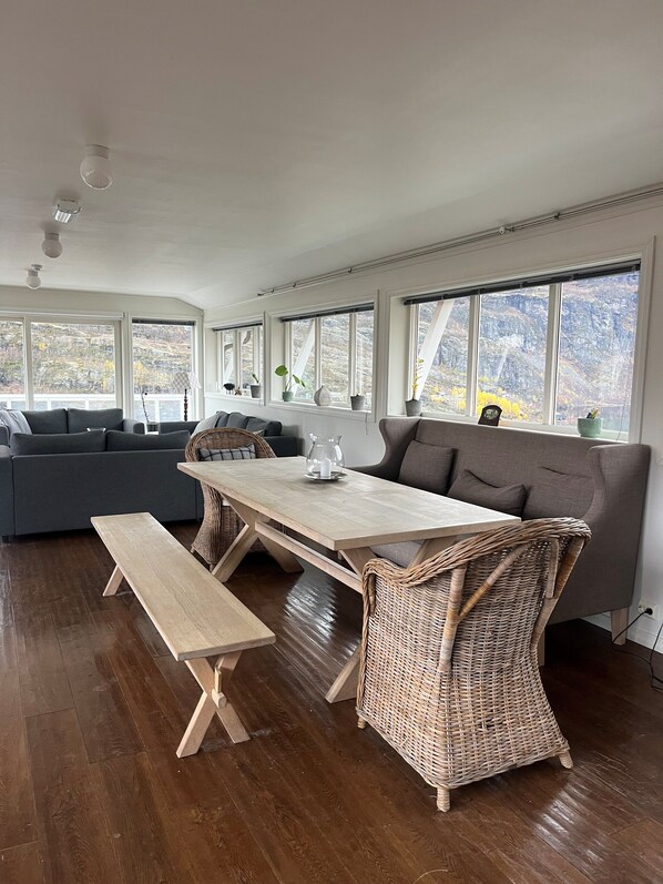 The food was amazing, the option for coffee or tea at anytime was nice, the view from the hotel was otherworldly with just a short walk down to the water. The staff was so friendly and met our many needs. Because it was so wet and rainy, the drying room and sauna really came in handy!! Loved everything about this place!