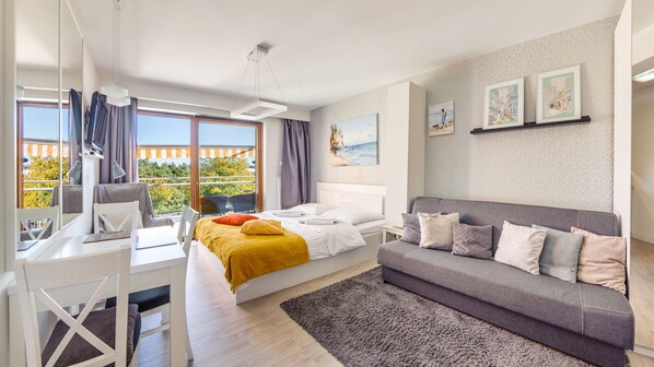 从Sun&Snow 公寓在 Ves仅需2 分钟步行可至弗瓦迪斯瓦沃沃海滩,5 分钟步行可至运动员星光大道。