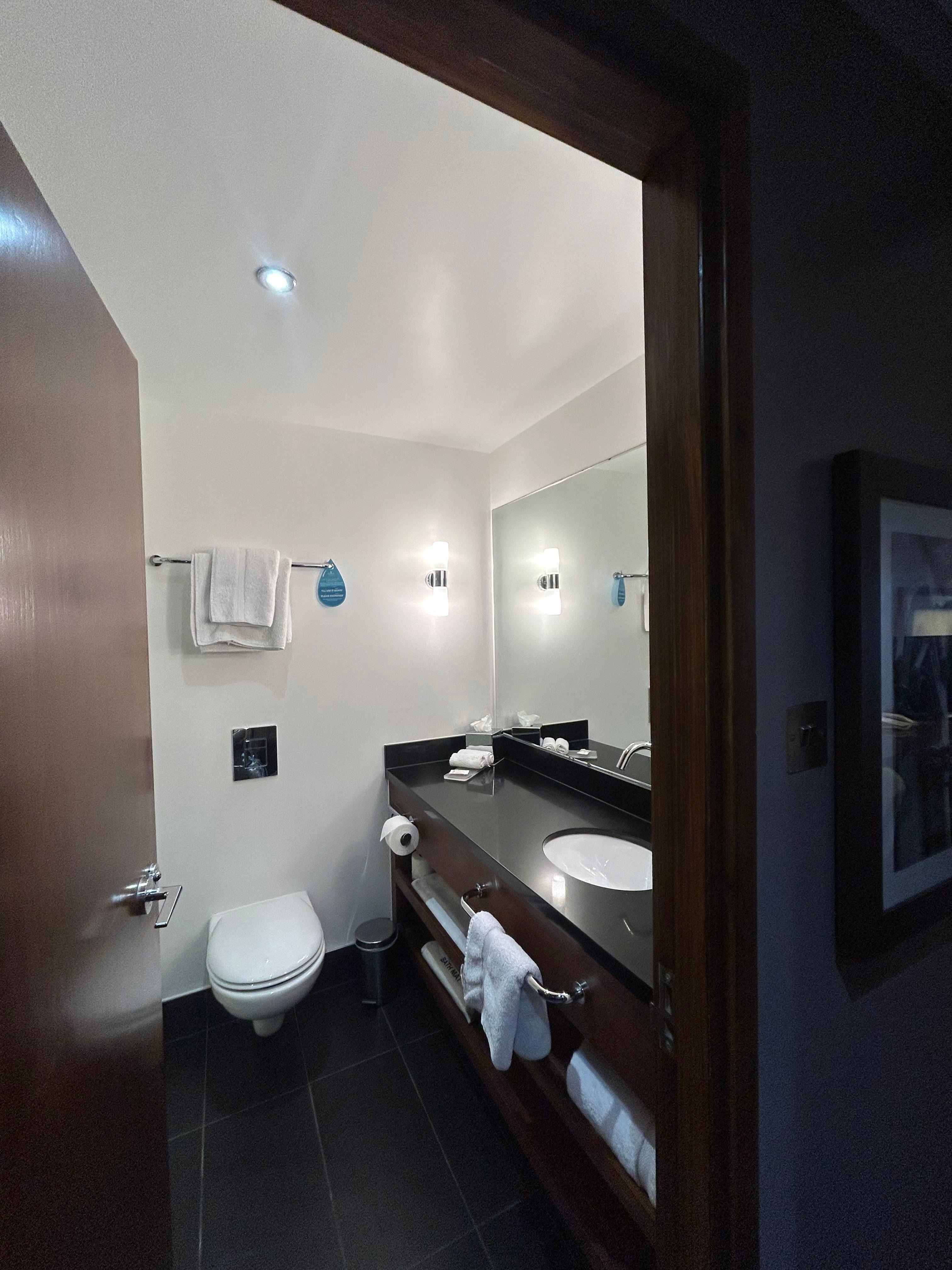 深浸浴缸和防过敏的高级床上用品为您打造完美的休闲场所。雨淋式淋浴喷头和遮光窗帘可提升您的体验。