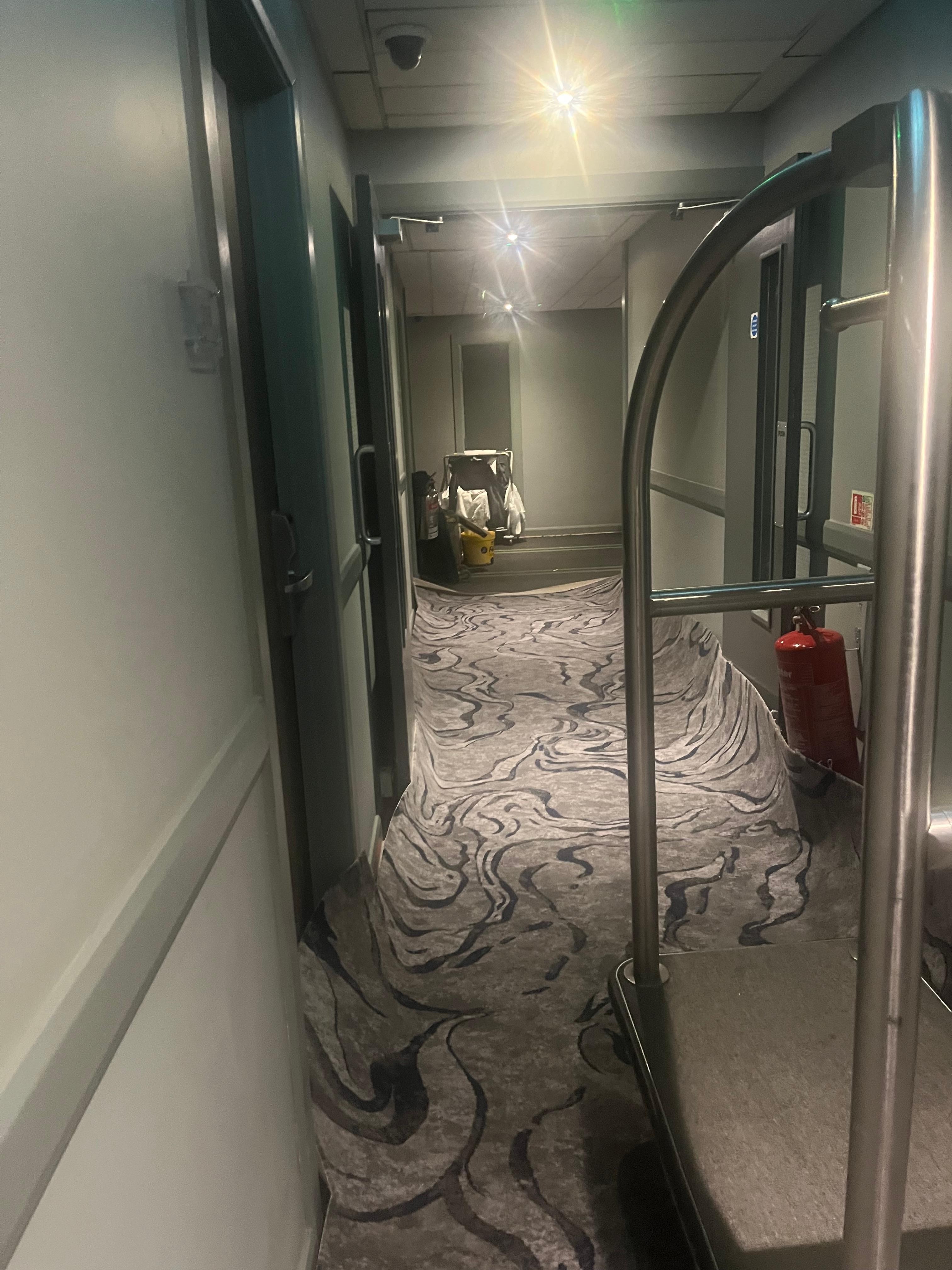 Yes air not working moved after 3 hr wait then the carpets on the whole corridor floor removed big trip Harvard continuos noise