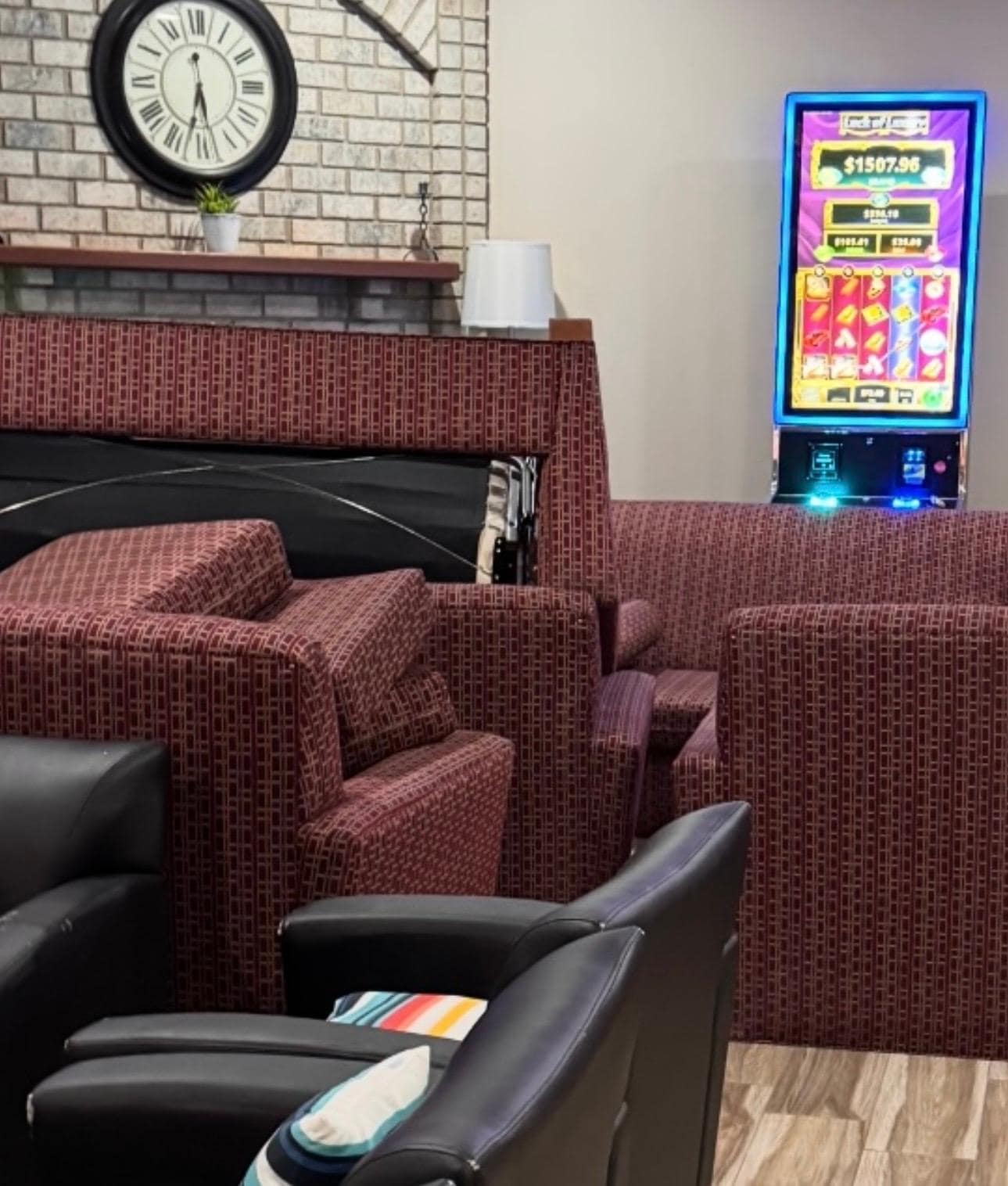 Hotel stated the couches were removed which they were not. The Casino machines are still blocked off by them. I do have pics to upload. Will not stay there again.