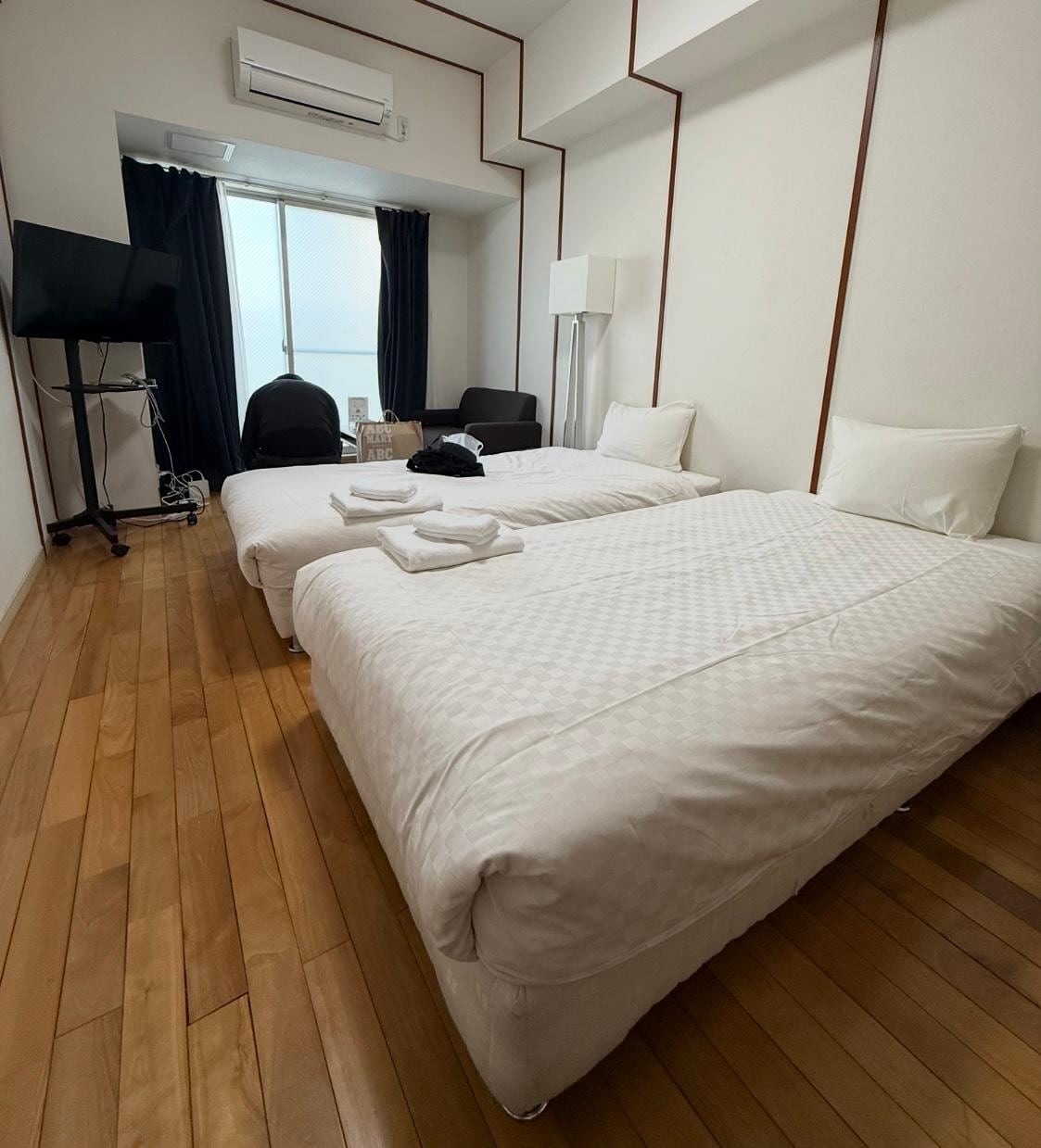 Für japanische Verhältnisse Recht großes Zimmer. Allerdings irgendwie unpersönlich und nah an Bahnstrecke gelegen. Empfehle ein Zimmer nach Westen hin