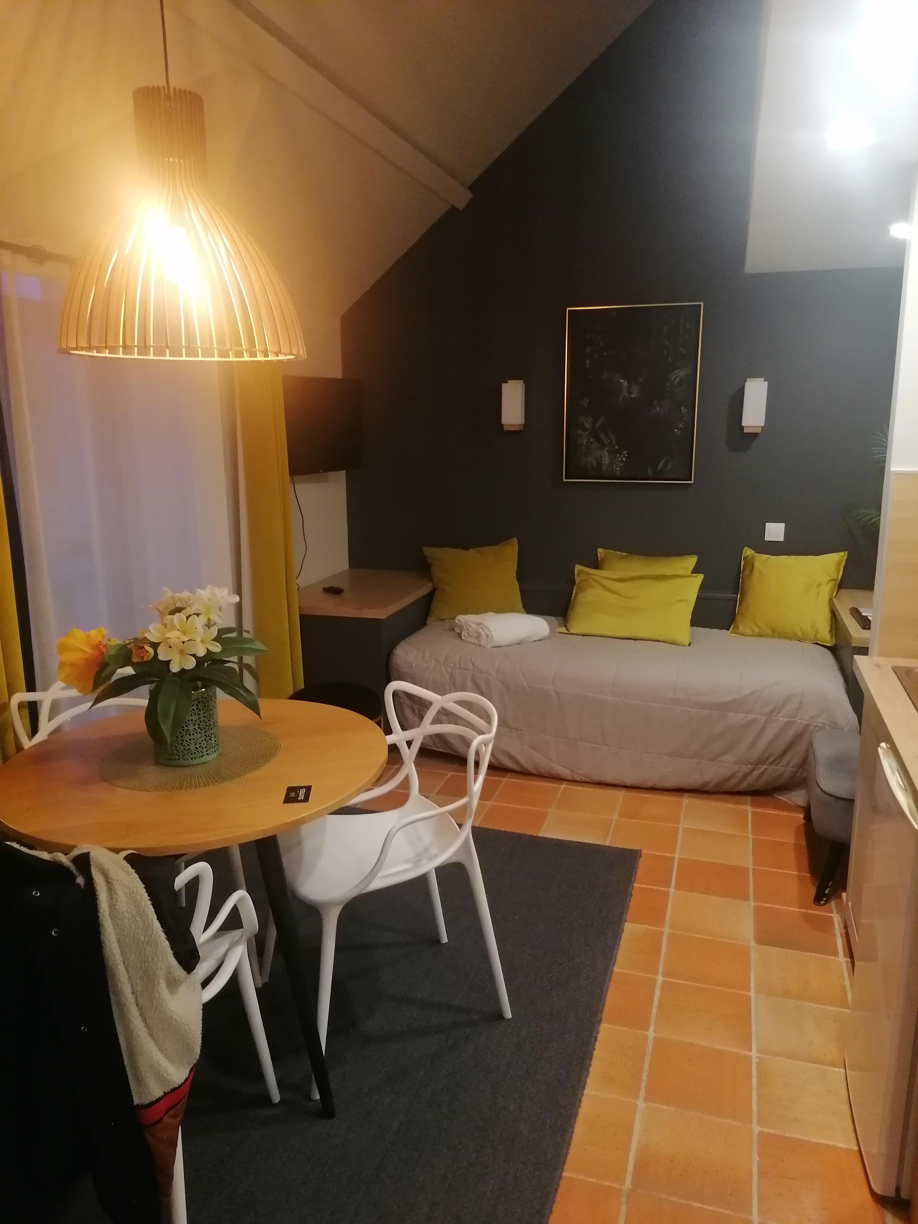 La chambre quelle surprise, immense, un vrai petit appartement très chaleureux bien décoré. Au calme et le cadre est top. Une très belle découverte