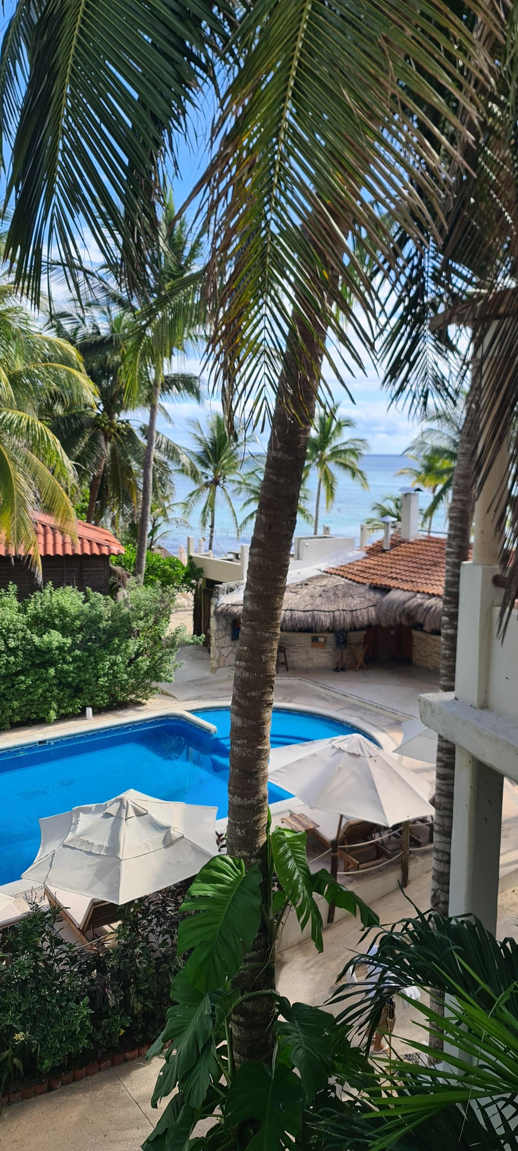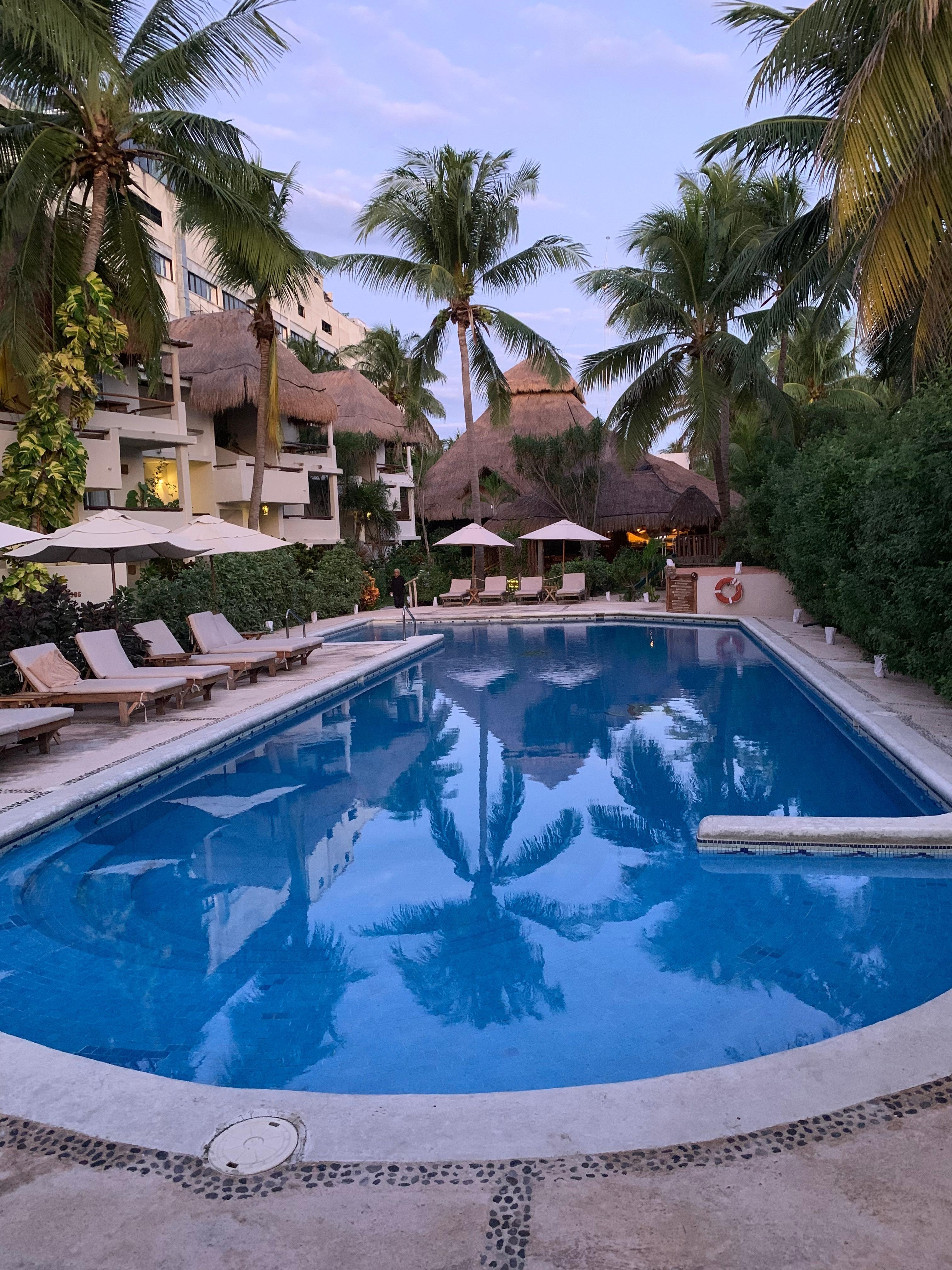 靠近艾尔卡马隆玛雅河高尔夫球场的海滨度假村,设有室外游泳池