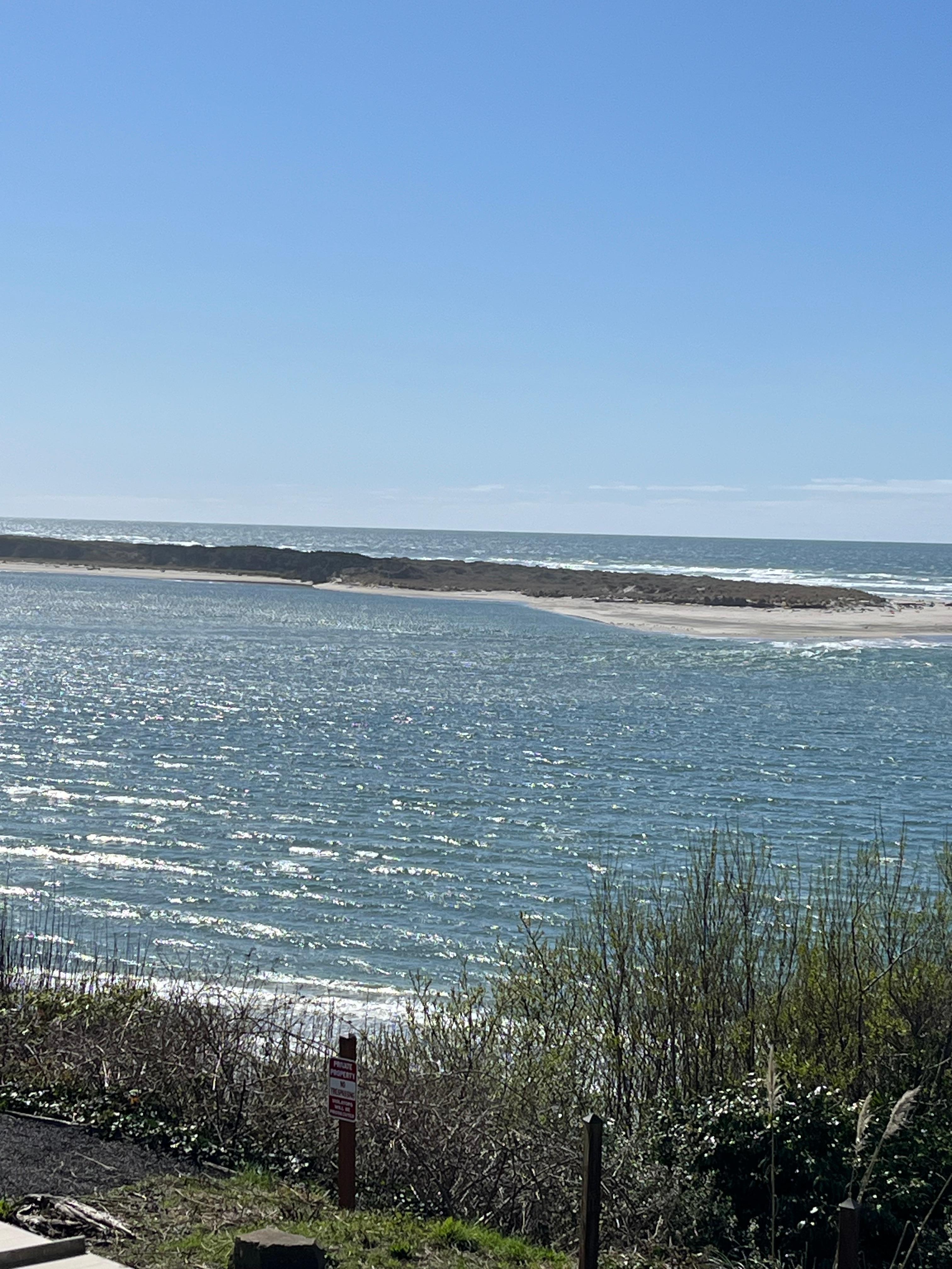 I stayed in Room 24 with a bay view. Only a drive aisle separate the rooms in the 20's from the slope that led down to the bay shoreline. Plusses were easy combination lockbox self check-in, the view of the bay, mouth of the bay, and ocean, and a large fridge, slightly smaller than a standard fridge, but much larger than a dorm fridge.