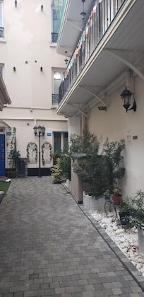 I was not looking for a particularly fancy hotel for just one night but I honestly do not recommand this hotel. It is not particularly cheap and even for Paris, rooms are so small that you have to tuck your suitcase under the bed. The room I was in looked quite shaby. It was on the second floor and there was no lift so I had to carry my heavy suitcase up a narrow staircase. The corridor that led to the room was located at the other end of a horrible-looking backyard. The room itself was quite noisy as I could hear people in the other rooms and the wifi was slow. The only good point is it was clean and breakfast was included in the price although it was very simple.