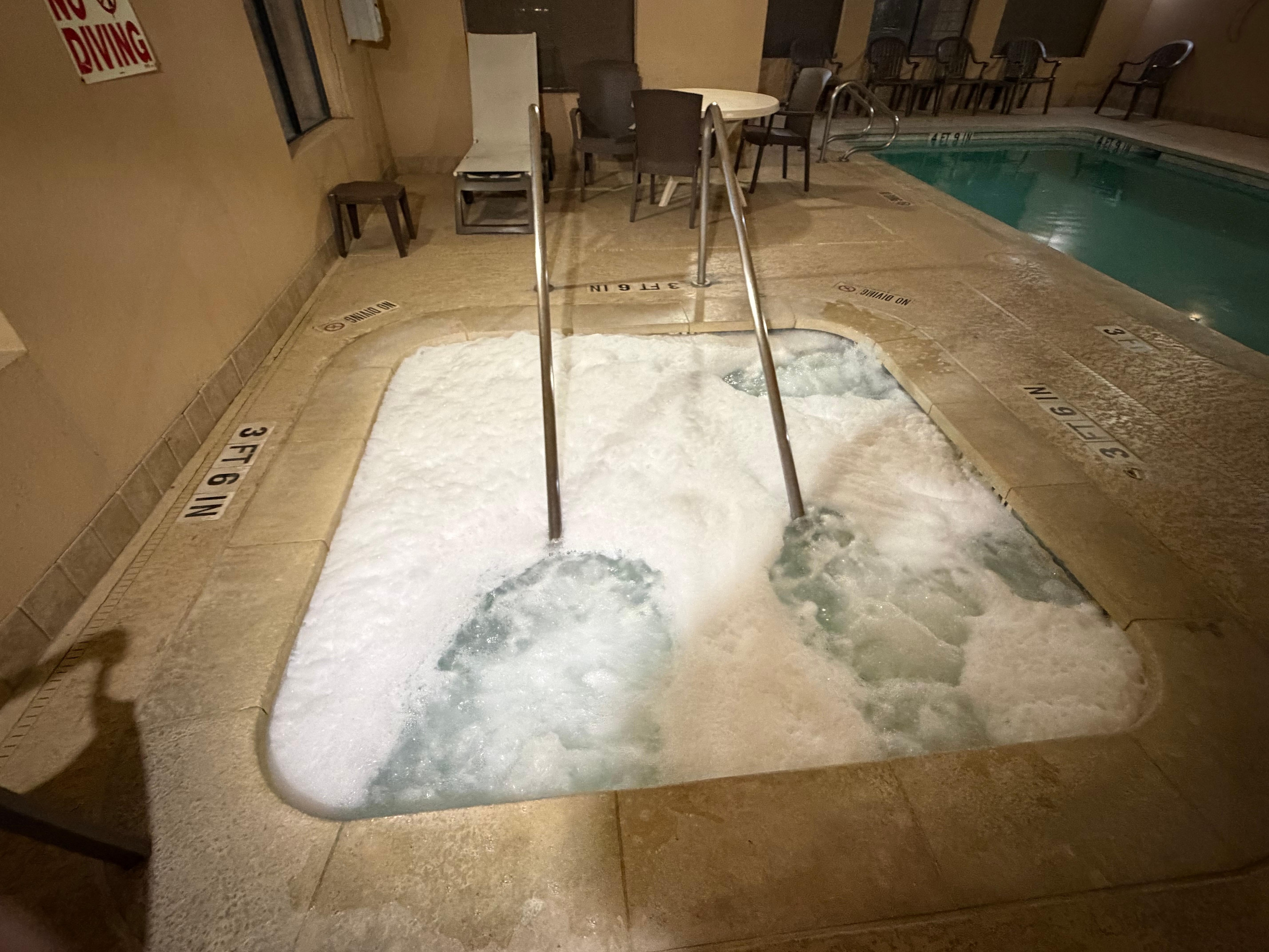 Don't let the pictures and rating fool you! It was a miserable experience, so miserable we left 2 days early of our 7 day trip. The pool has holes in the bottom of the concrete and sharp pieces are scattered all over the bottom making it impossible to enjoy the hot tub had some sort of chemical or soap on it that made it foam like a bubble bath this is not normal. The whole hotel including the pool area was dark and gloomy, doors rusted. I went to the desk for change for the laundry room and the desk attendant was litterally asleep so I walked away and went next door for quarters. Under the carpet throughout the building there's holes in the sub floor which I almost fell stepping in multiple times. The towel rack fell off the wall and struck my toddler when we hung a towel on it. I will never again step foot in this place you probably shouldn't either unless you wanna terrible experience.