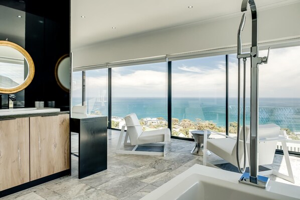 在蓝色海洋顶层公寓欣赏全景