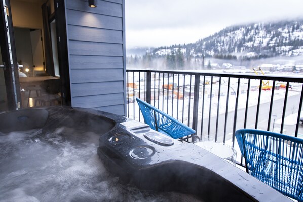 靠近雷弗尔斯托克山滑雪圣地的共管式公寓,设有室外私人热水浴缸