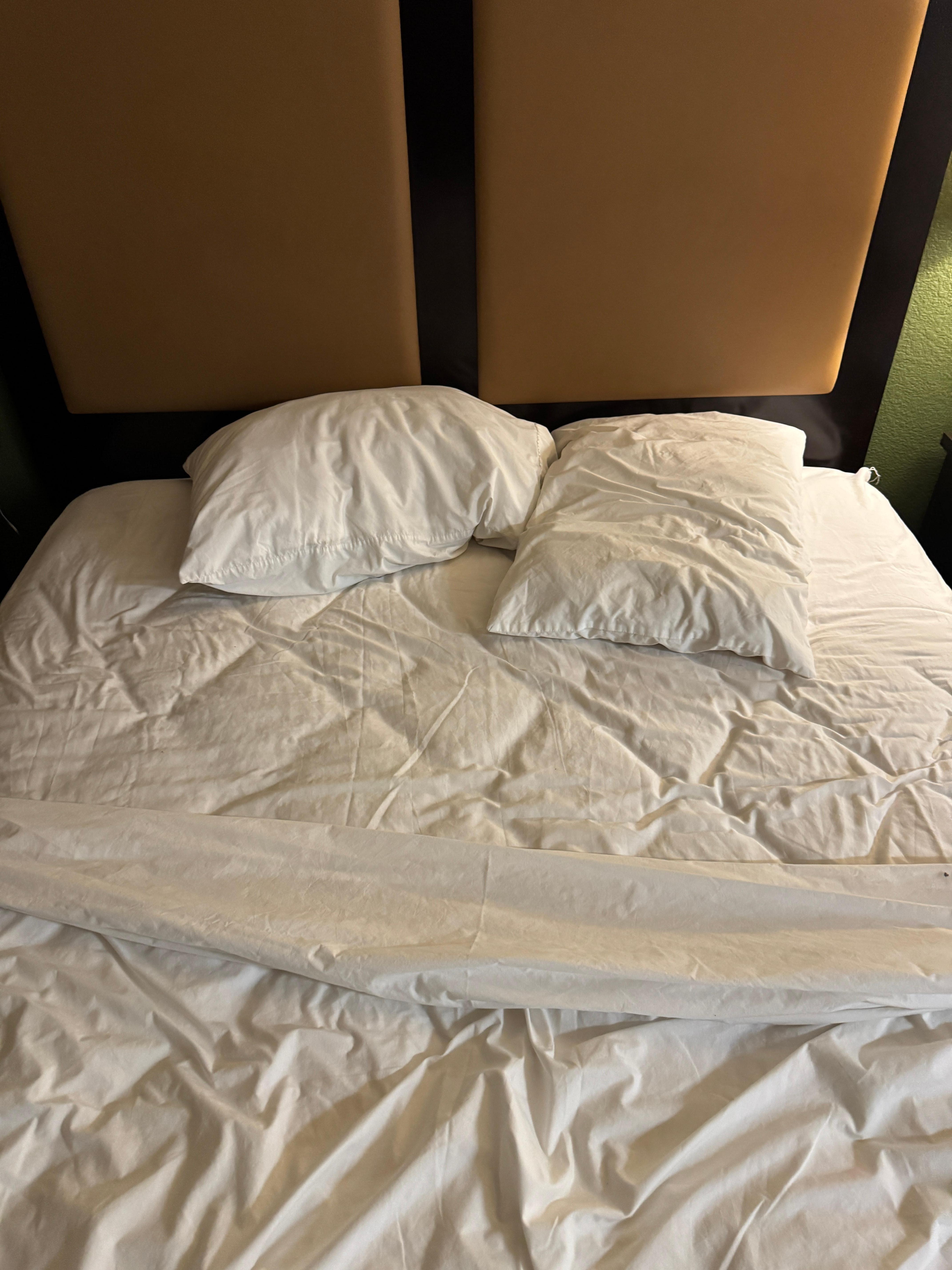 The hotel hallways look like they haven’t been cleaned or vacuumed in years. The odor in the hallways was unbearable. Our room smelled like cat urine. Carpets were stained, dirty and appeared as if they never get vacuumed. The shower and counter were stained and disgusting. The refrigerator door was broken. The elevator had graffiti and needed to be swept. Worst hotel ever!!!!