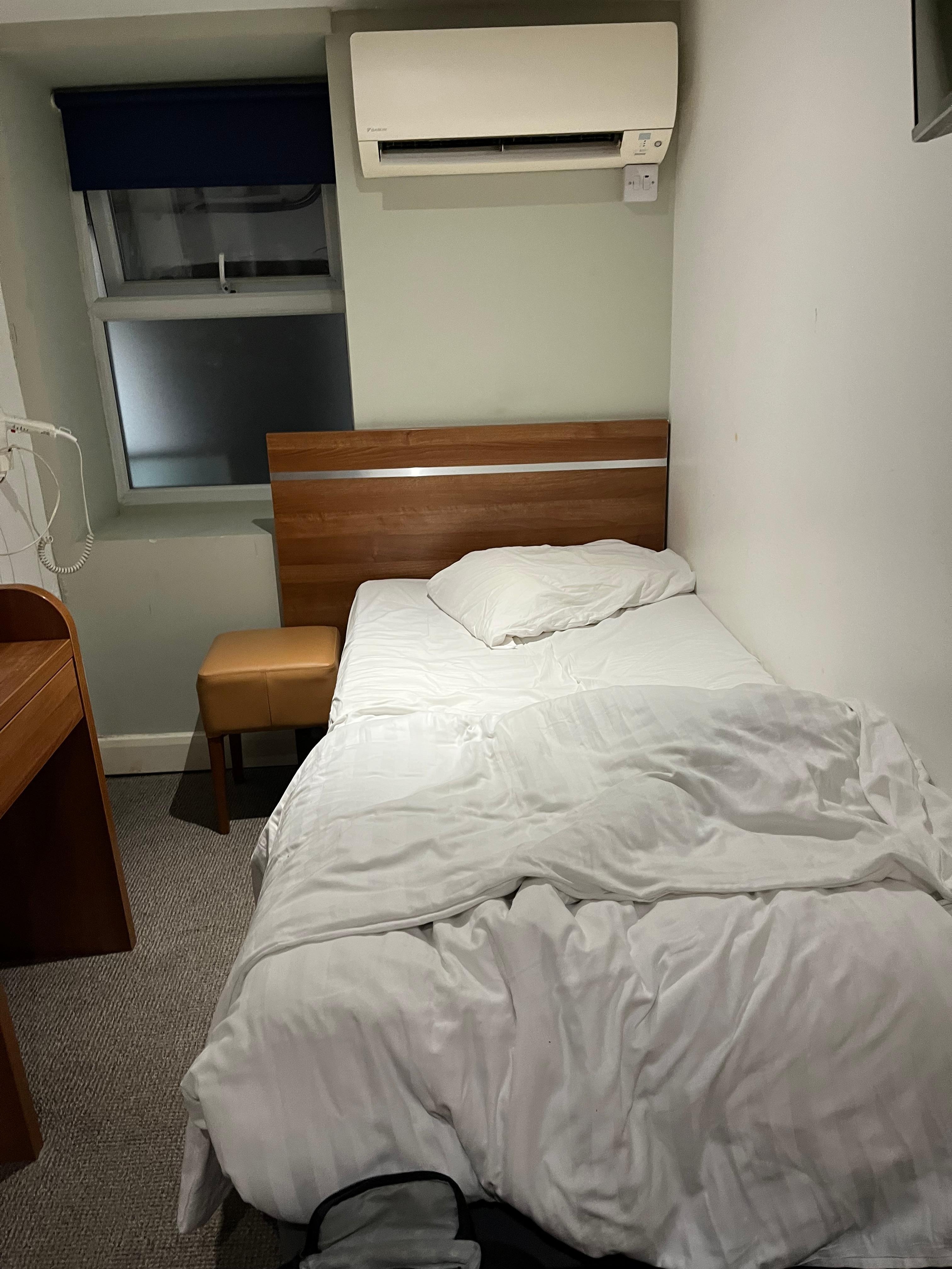 It should not be called a hotel. It's just a room of less than 10 sq m with a bed and bathroom. No chair, no cleaning service, no air-con, no restaurant, no breakfast, no WiFi .Telephone not connected, fan broken. It's absolutely not worth £182 per night (excluding tax). We hardly stayed for 2 nights despite 3 nights were paid. The worst hotel experience ever had in lifetime.