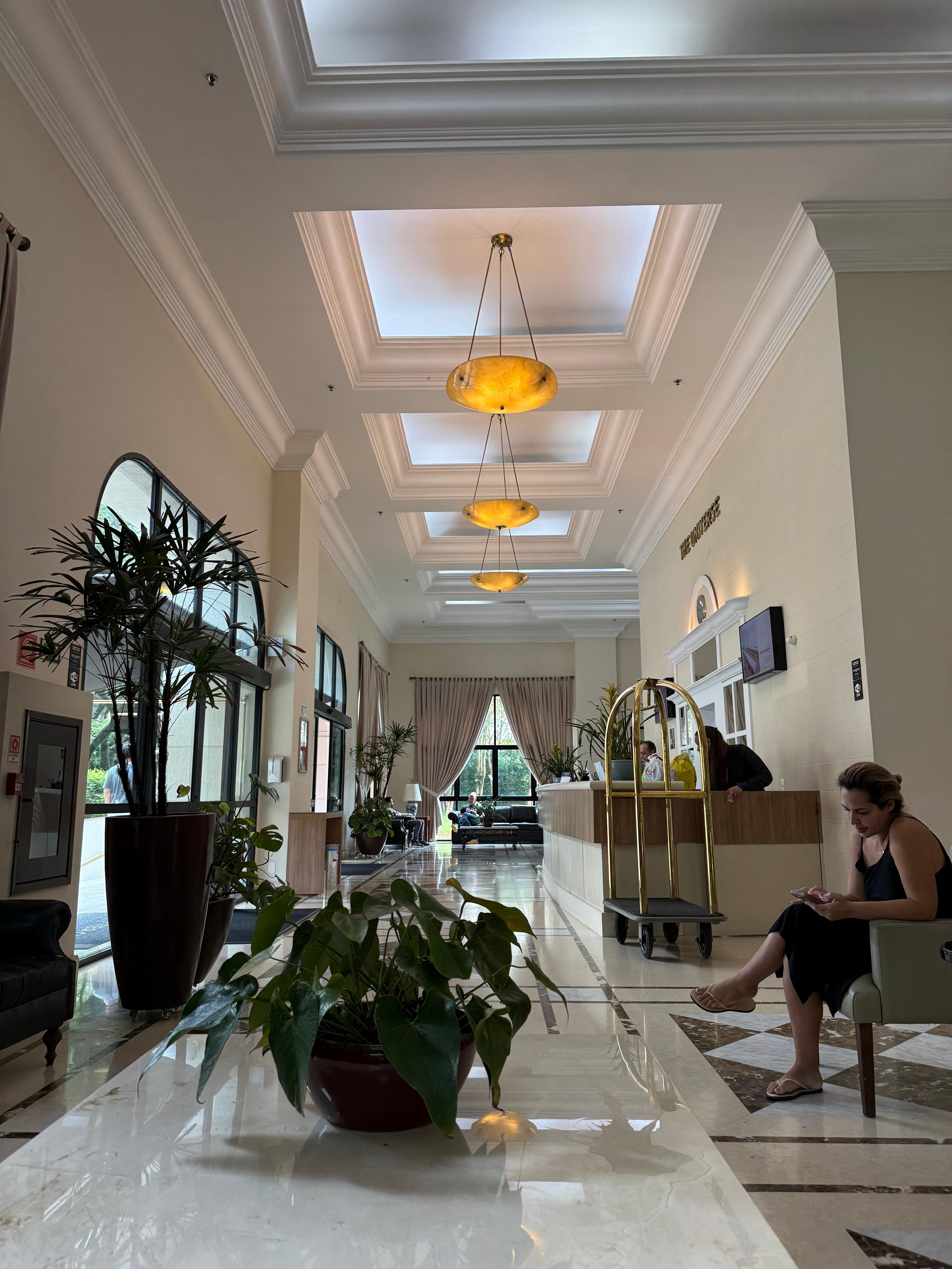 Quarto excelente, hotel lindo, café da manhã fraco e banheiro pequeno.