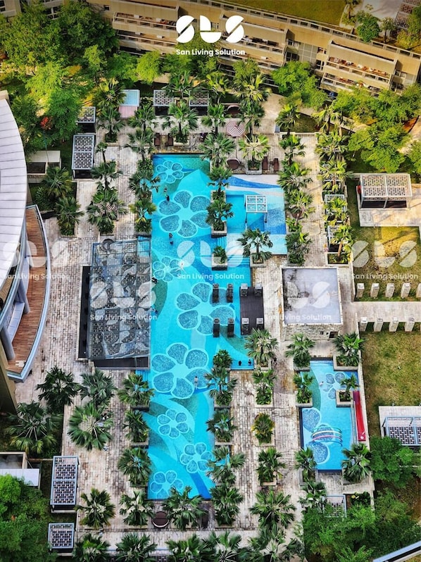 Jakarta apartment with outdoor pool, connected to a shopping center
