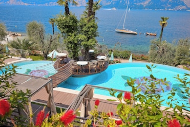 Sans doute l’un des meilleurs hôtels que nous ayons fréquentés:confort de la chambre , son petit balcon sur le lac, le jardin fleuri avec ses piscines et ses banquettes confortables et variées,les nombreux équipements loisirs inclus dans le prix ( Spa, vélos, voiture, parking) service parfait, un très bon restaurant ( le Bistrot, nous ne sommes pas allé dans le 1 étoile Michelin)