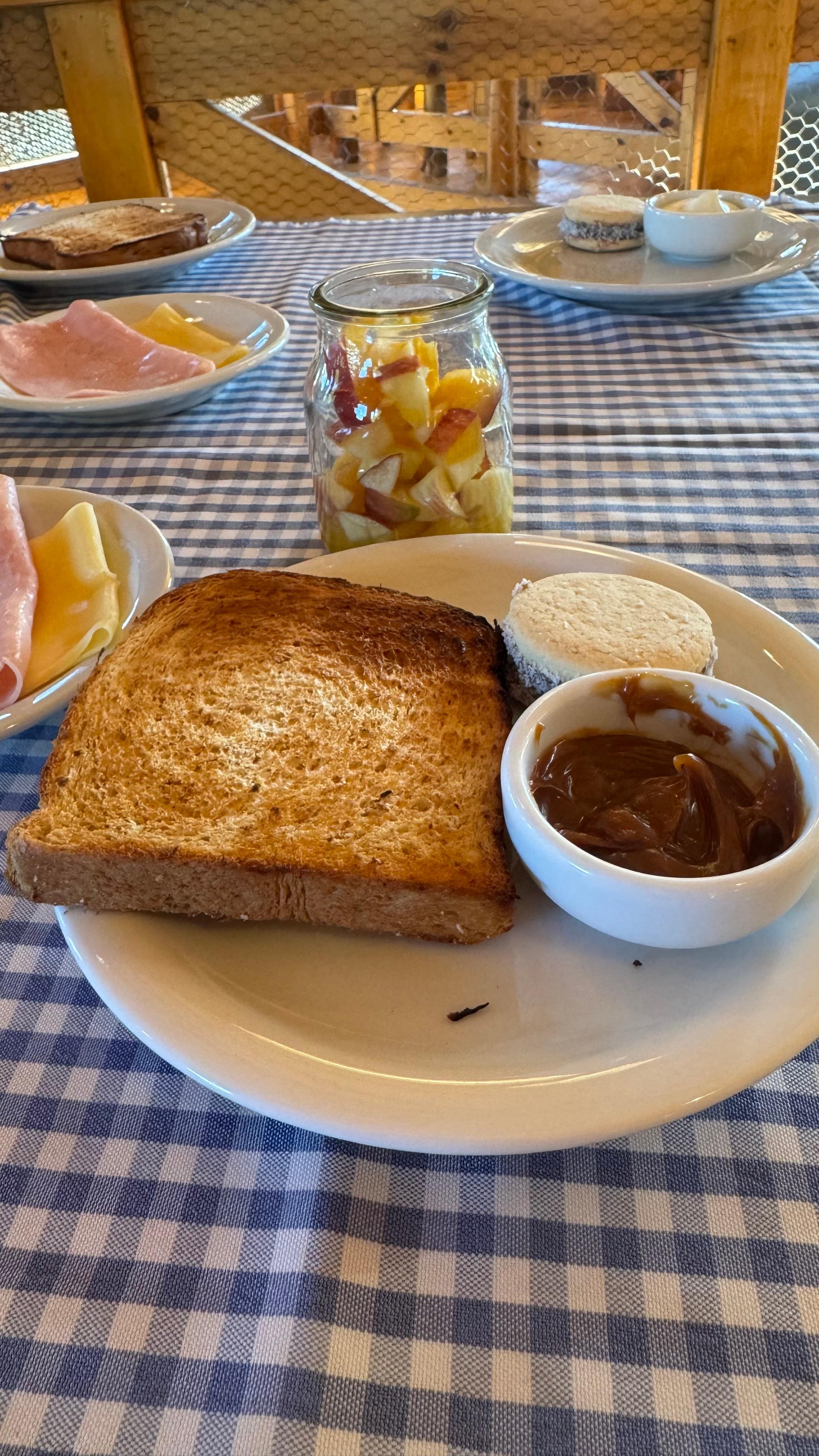 Good breakfast - continental style, scrabbled eggs, toast, pancakes.