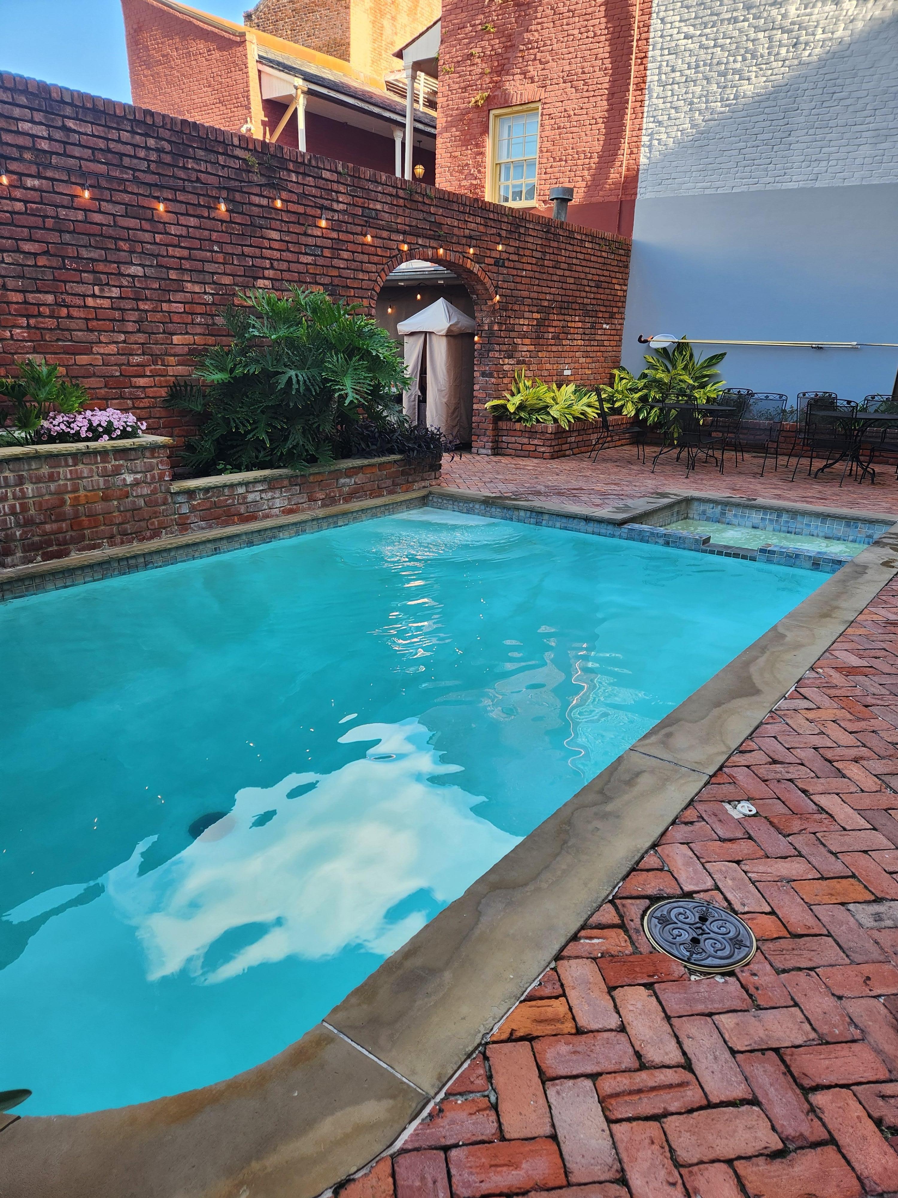 靠近波旁街的历史悠久的酒店,设有室外游泳池