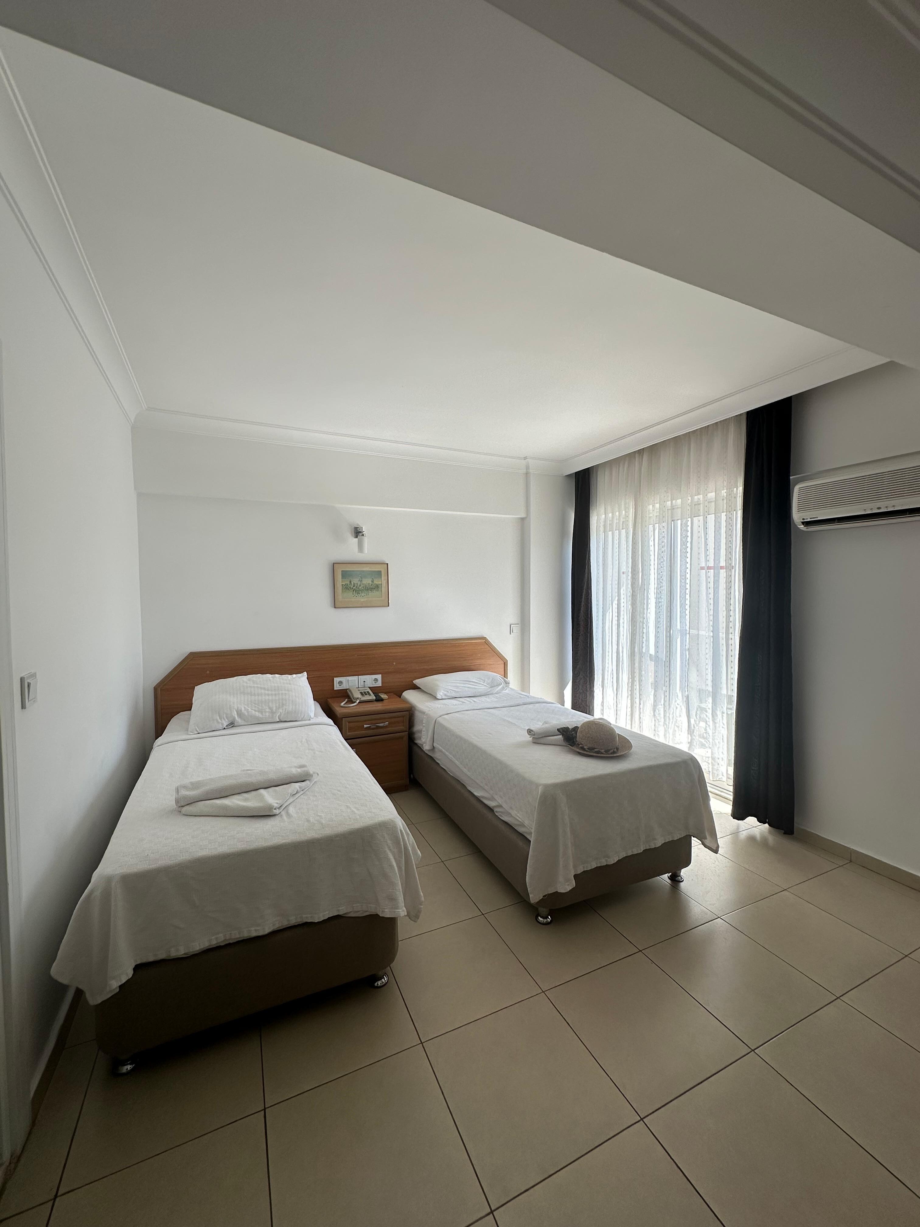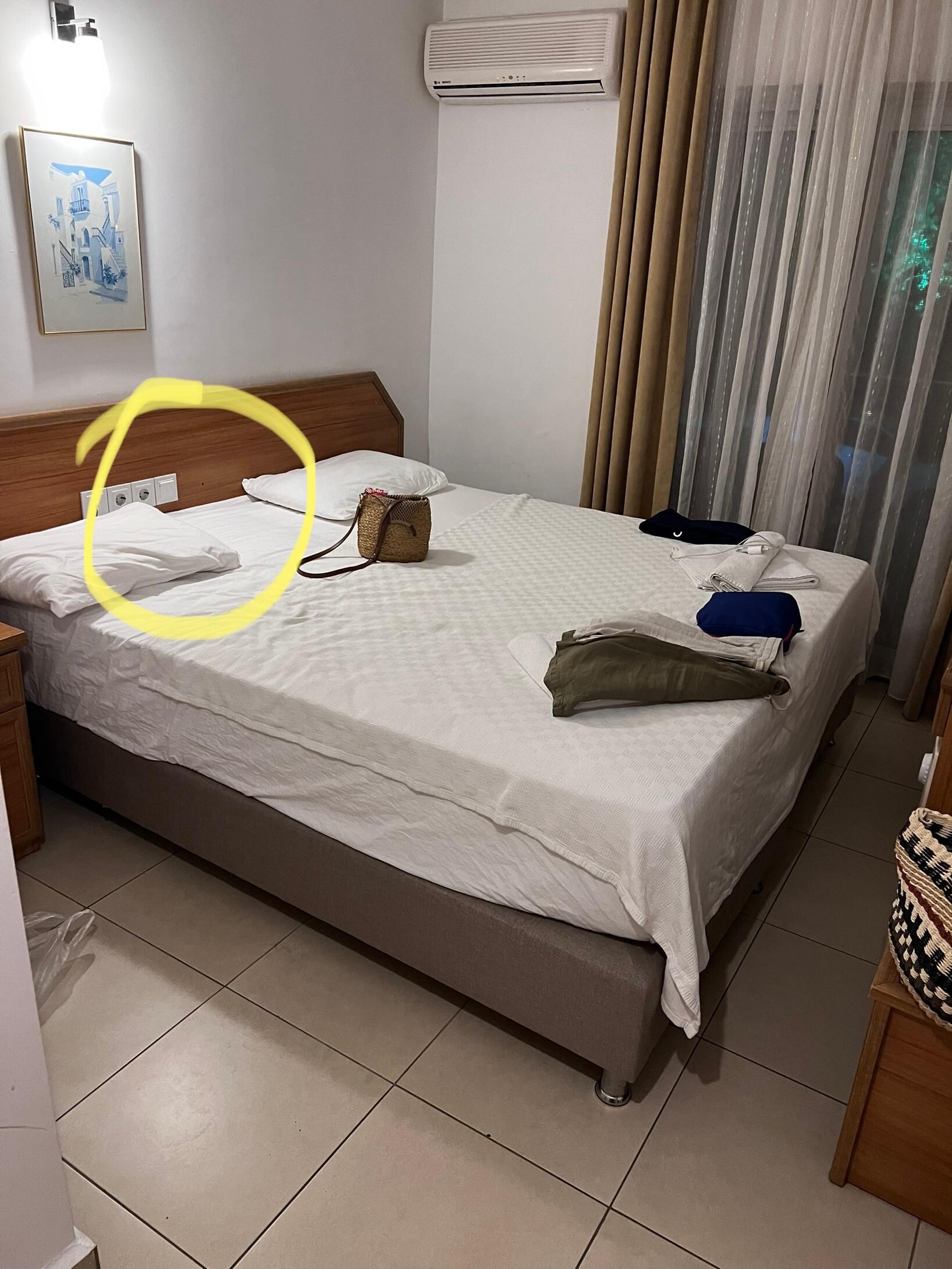Tek buyuk yatak istememize ragmen bize single iki yatak birlesmis olarak verildi. Balayi ciftiyiz ve yatak basinin ortasinda yastaik arkasinda prizlee var. birlestirilmis yatak olsa dahi bu sekilde olmamali.Banyo iki ayak buyuklugunde. Normal bir insan burasa banyo yapamaz.