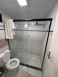 Atendimento na recepção demorado, pouca informação. Área do quarto ar condicionado não gelou, mobilia velha, toalhas bem desgastadas. Banheiro, o chuveiro não esquentou, o vidro Box só tinha a parte fixa a porta não tinha. Rejunte do banheiro sujo demais, tampa do vaso quebrado, a porta do banheiro sem pintura.