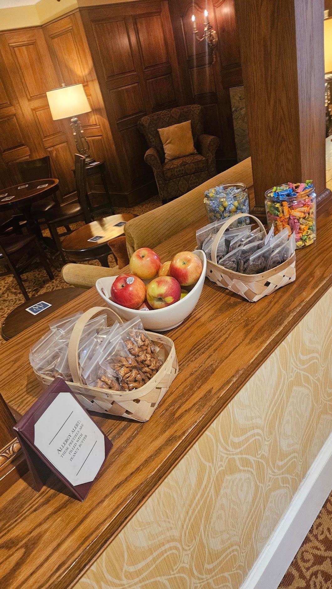 Staff was super friendly and helpful. Room was beautiful and had lots of room. The sitting area was a great place to relax and enjoy some free snacks. I loved having the restaurant attached. The food was all phenomenal and the staff were all super friendly!