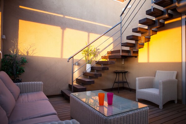 入住这家公寓时,不妨到屋顶露台饱览迷人景致。所有出租式公寓均备有厨房等便利服务设施,而且还提供私人热水浴缸和阳台。