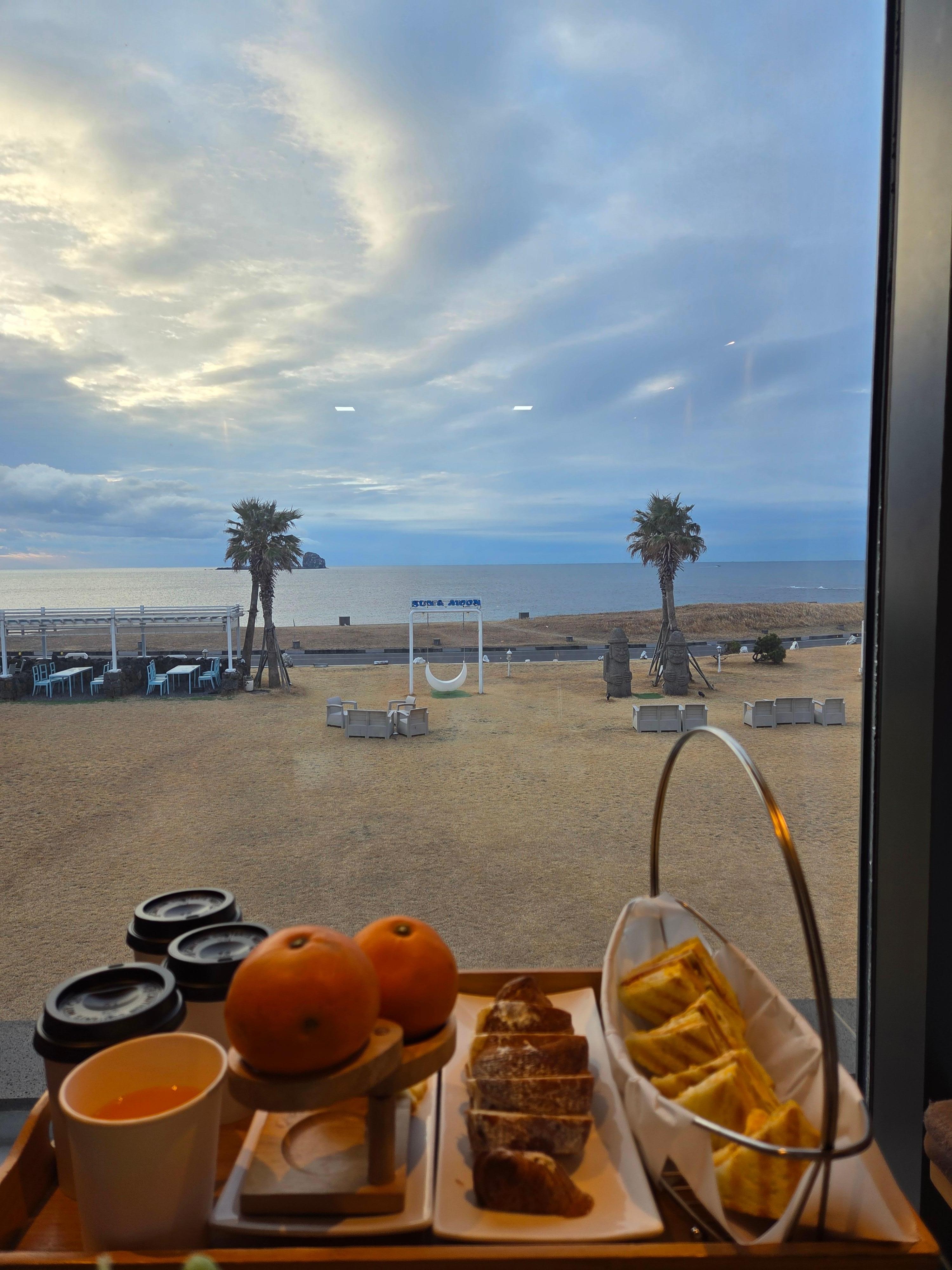 Easy to pick up the car at Jeju airport and drive to Sun and Moon by GPS. Just key in the resort telephone number and will guide you to go there. Jeju is a nice place with many nice beaches. The resort is owned by a family. Jullie and her brother are very professional and helpful and give you all information you may need during the stay. The building is very new and you will see a lot of nice details in the design and construction. I think their mother is a talent designer. The view from the room is super beautiful. You can see the ocean, with a feeling of peace. There is a big space of grass land in front of the cafe where you can enjoy the daily made cakes and bread while enjoying the sun light and ocean view. You may also consider having barbecue during the evening. Nearby, there are lots of nice restaurants, some can even be reached by foot. I encourage you to book a car in advance, e.g. 1.5 months before, to get a good rate. I booked A J Rent a car. The car is good and the process was smooth as well. I enjoyed the stay very much at Sun and Moon! I definitely give a full mark! Thanks Jullie and your family!