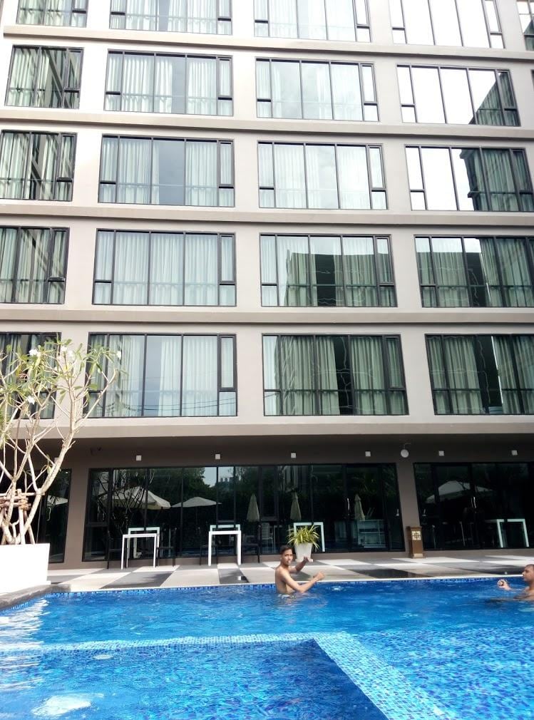 靠近步行街的酒店,设有室外游泳池