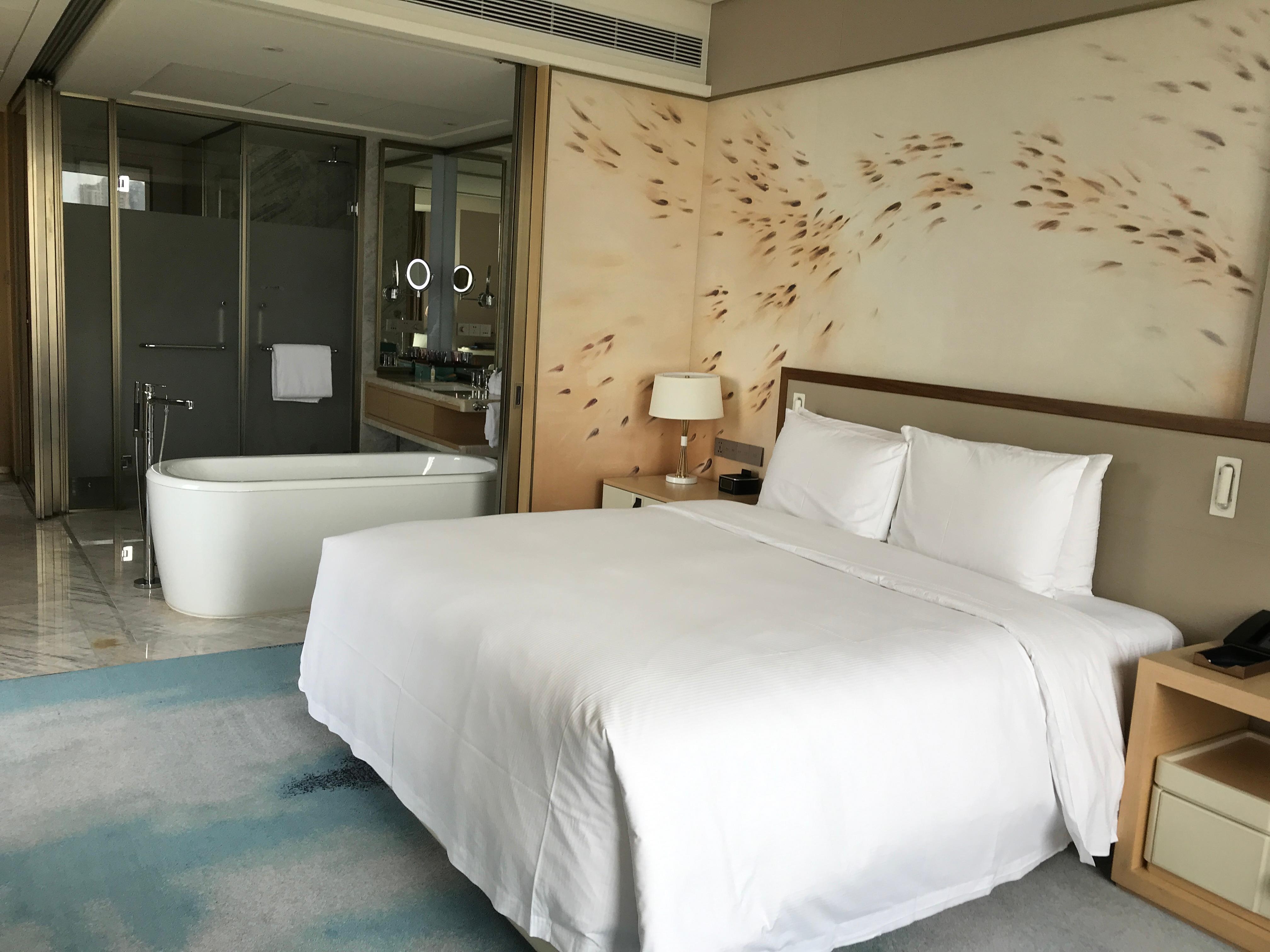 高档床上用品与独立卧室相配,为您带来极致放松体验。遮光窗帘确保您安然入睡,还提供夜床服务和 24 小时餐饮服务。